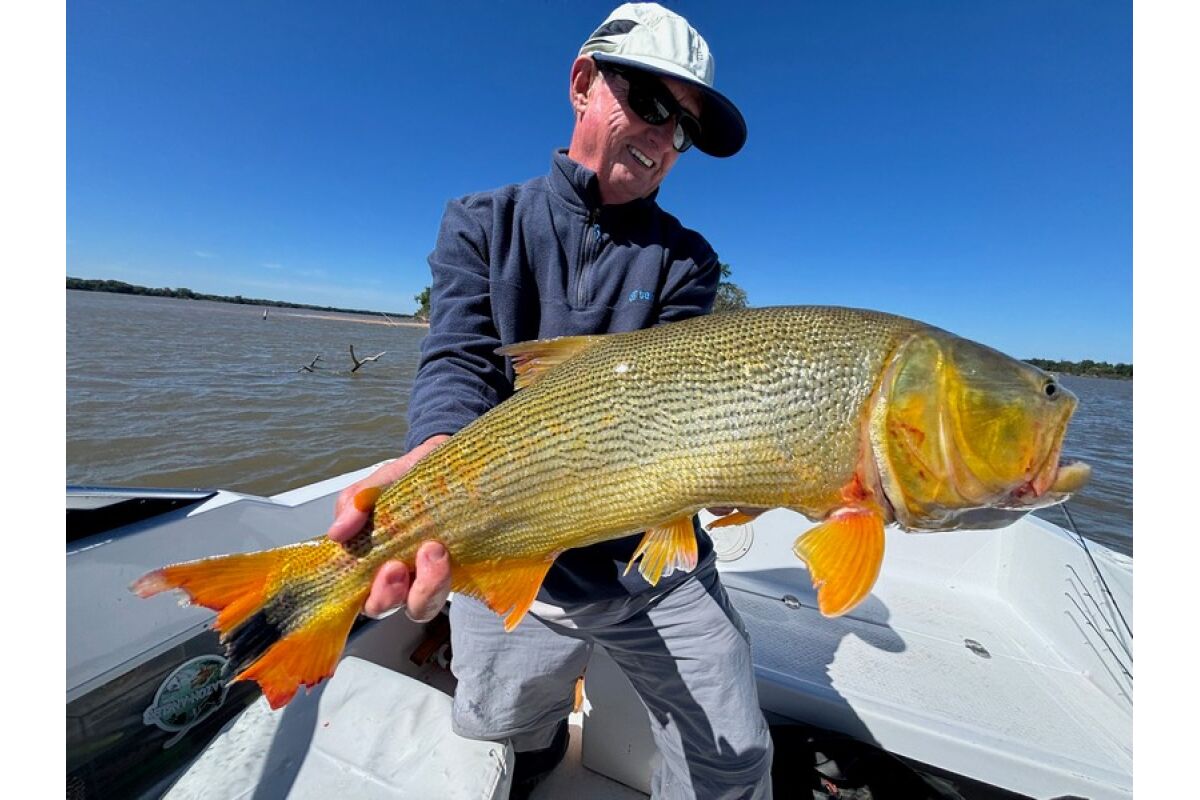 De "River Tiger" (Salminus maxillosus), zoals de golden dorado ook vaak wordt genoemd, is een van de meest gewaardeerde zoetwatersportvissen ter wereld. Deze agressieve en krachtige vis is constant op zoek naar scholen aasvis om aan te vallen en dit maakt hem interessant voor zowel spin- als vliegvissers. De agressieve aard van deze ongrijpbare vis, zijn spectaculaire springcapaciteiten, enorme kracht en uithoudingsvermogen maken hem tot de ultieme zoetwatervis. Ongeacht of je met kunstaas of de vlieg vist, als je deze vis eenmaal aan de haak geslagen hebt, zal deze de lijn als een sneltrein van reel strippen.