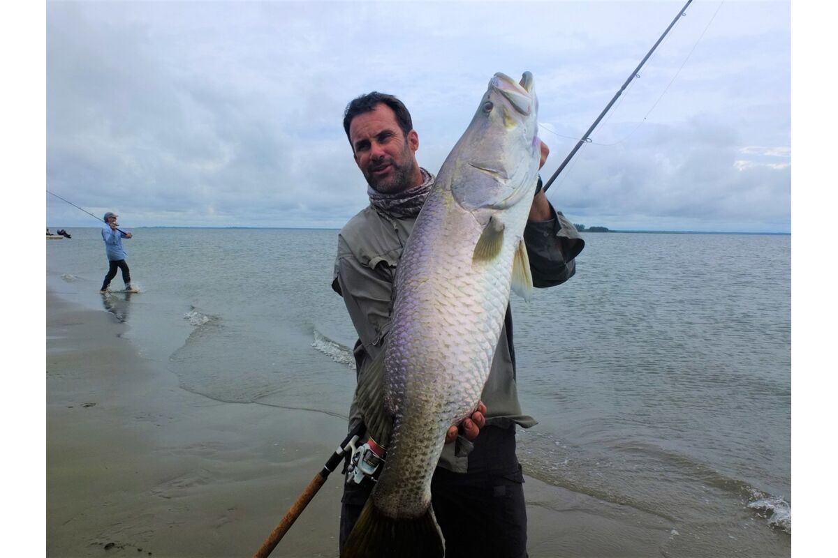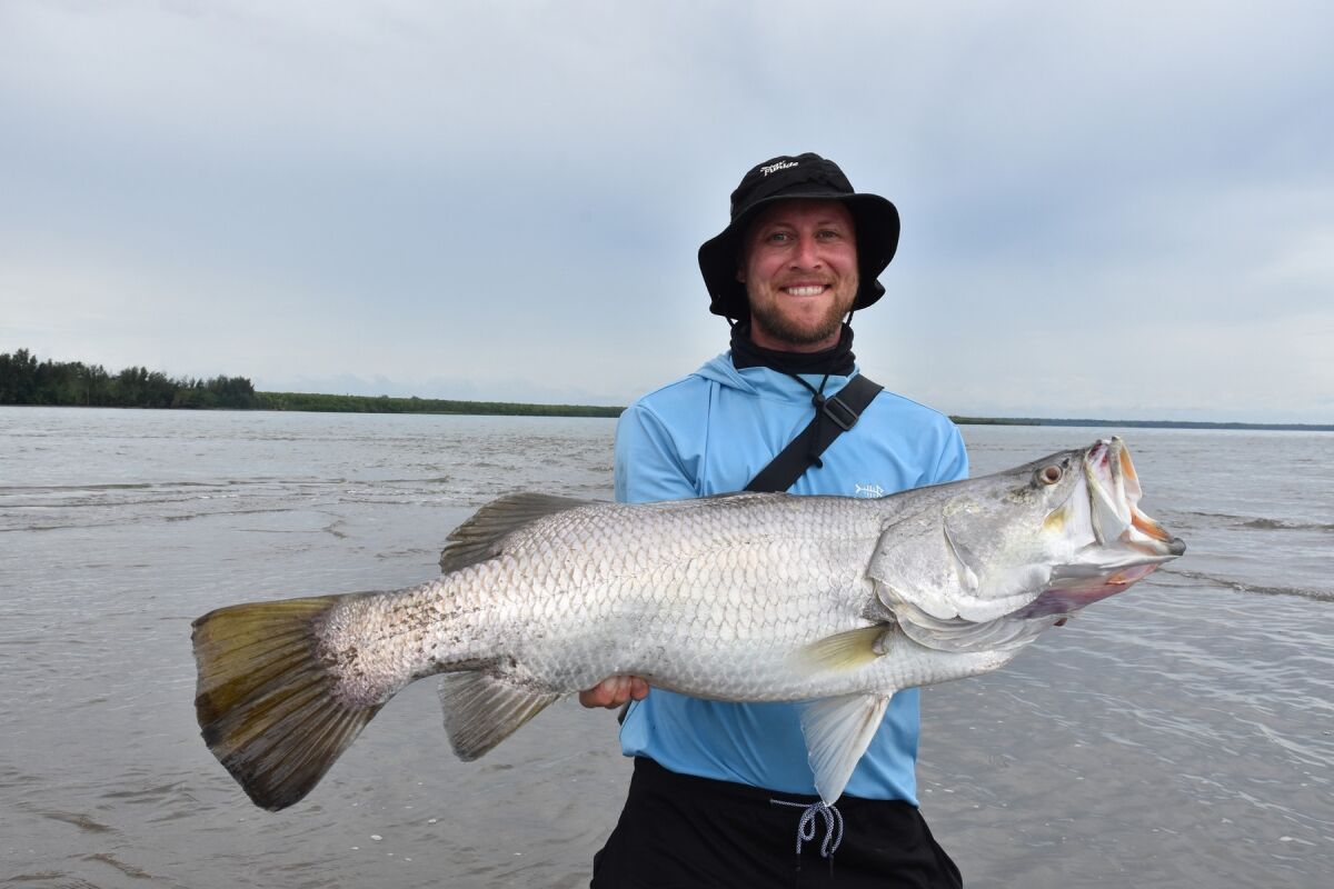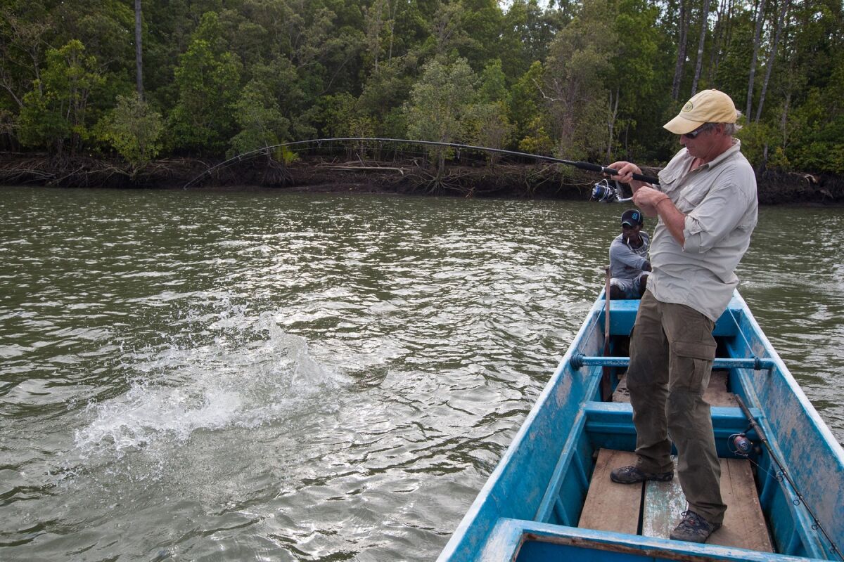 Wanneer de omstandigheden goed zijn (niet al te veel stroming en redelijk helder water) kun je zomaar 10 barramundis op een dag haken. Omdat er op obstakelvrij water wordt gevist, kun je behoorlijk licht vissen. Zeg maar zwaar zeebaarsmateriaal. Niet te licht want je moet rekening houden dat je zomaar een 100 cm+ barramundi kunt haken van 10-12 kg+! Ze zijn hier al gevangen tot 115 cm.