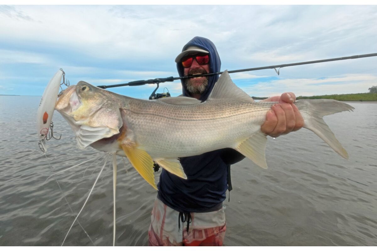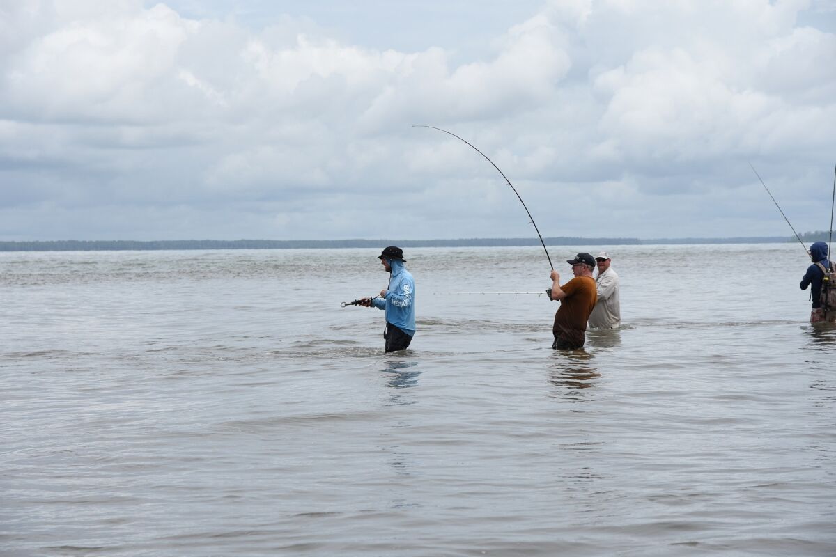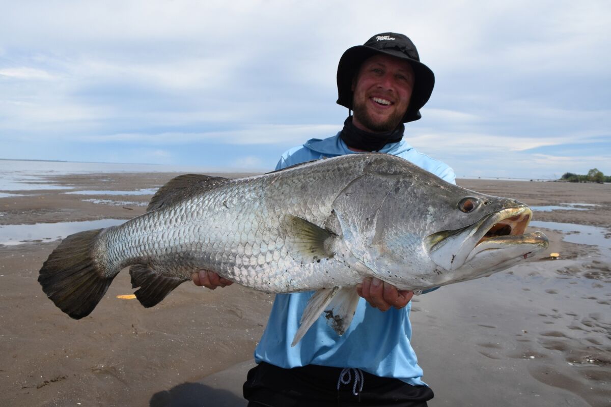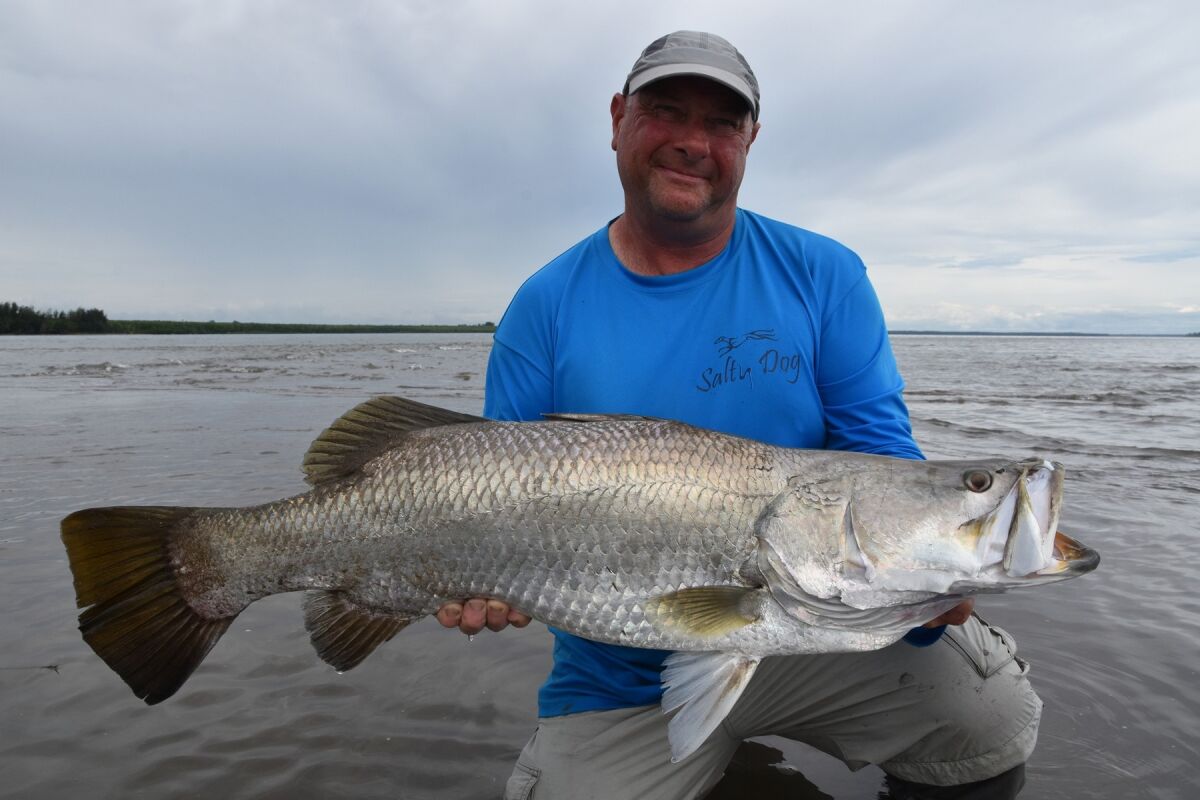 Wanneer de omstandigheden goed zijn (niet al te veel stroming en redelijk helder water) kun je zomaar 10 barramundis op een dag haken. Omdat er op obstakelvrij water wordt gevist, kun je behoorlijk licht vissen. Zeg maar zwaar zeebaarsmateriaal. Niet te licht want je moet rekening houden dat je zomaar een 100 cm+ barramundi kunt haken van 10-12 kg+! Ze zijn hier al gevangen tot 115 cm.