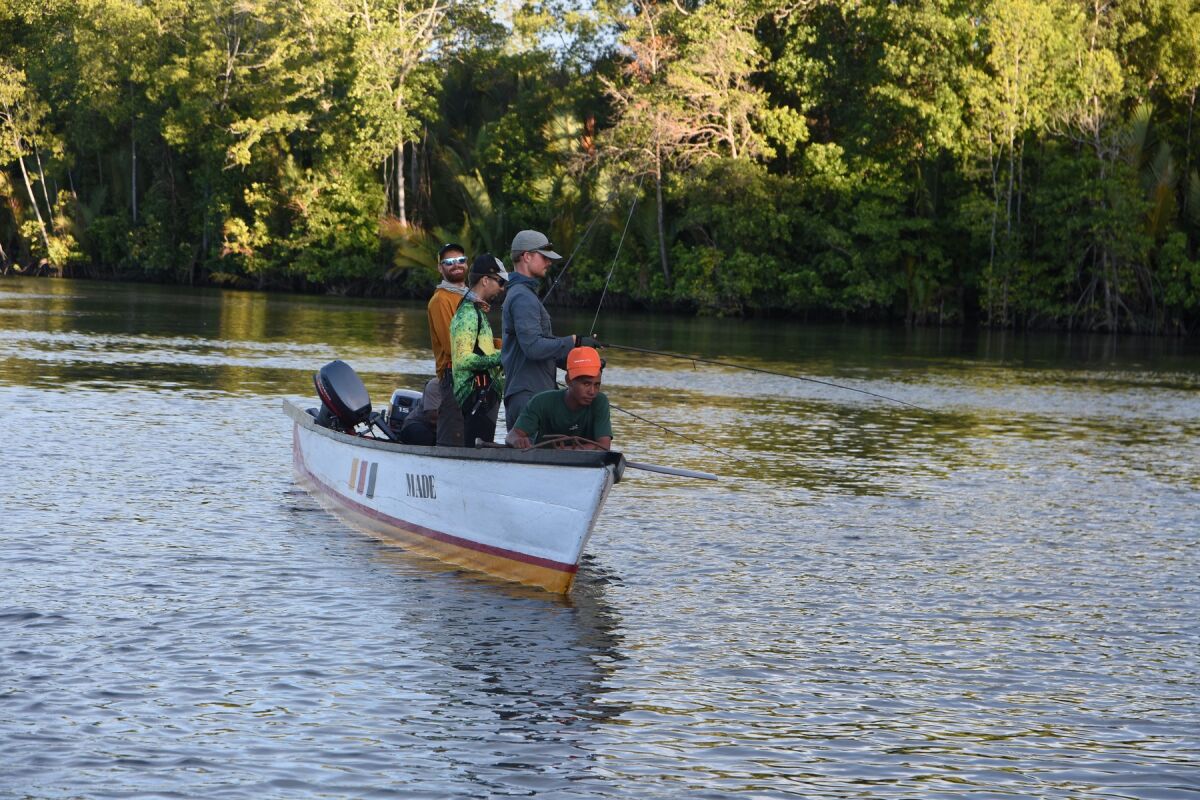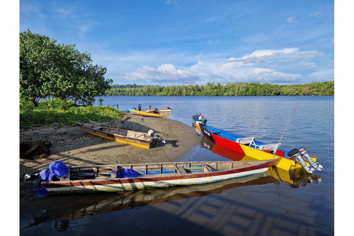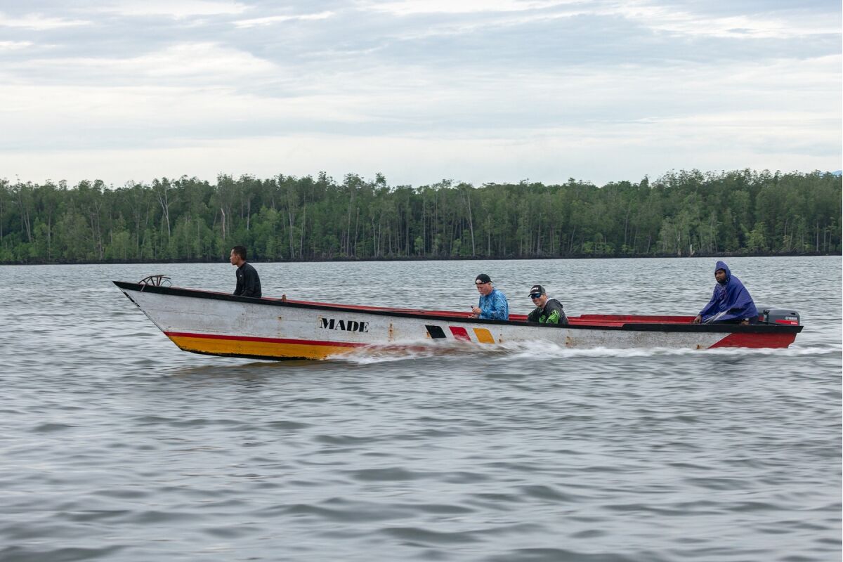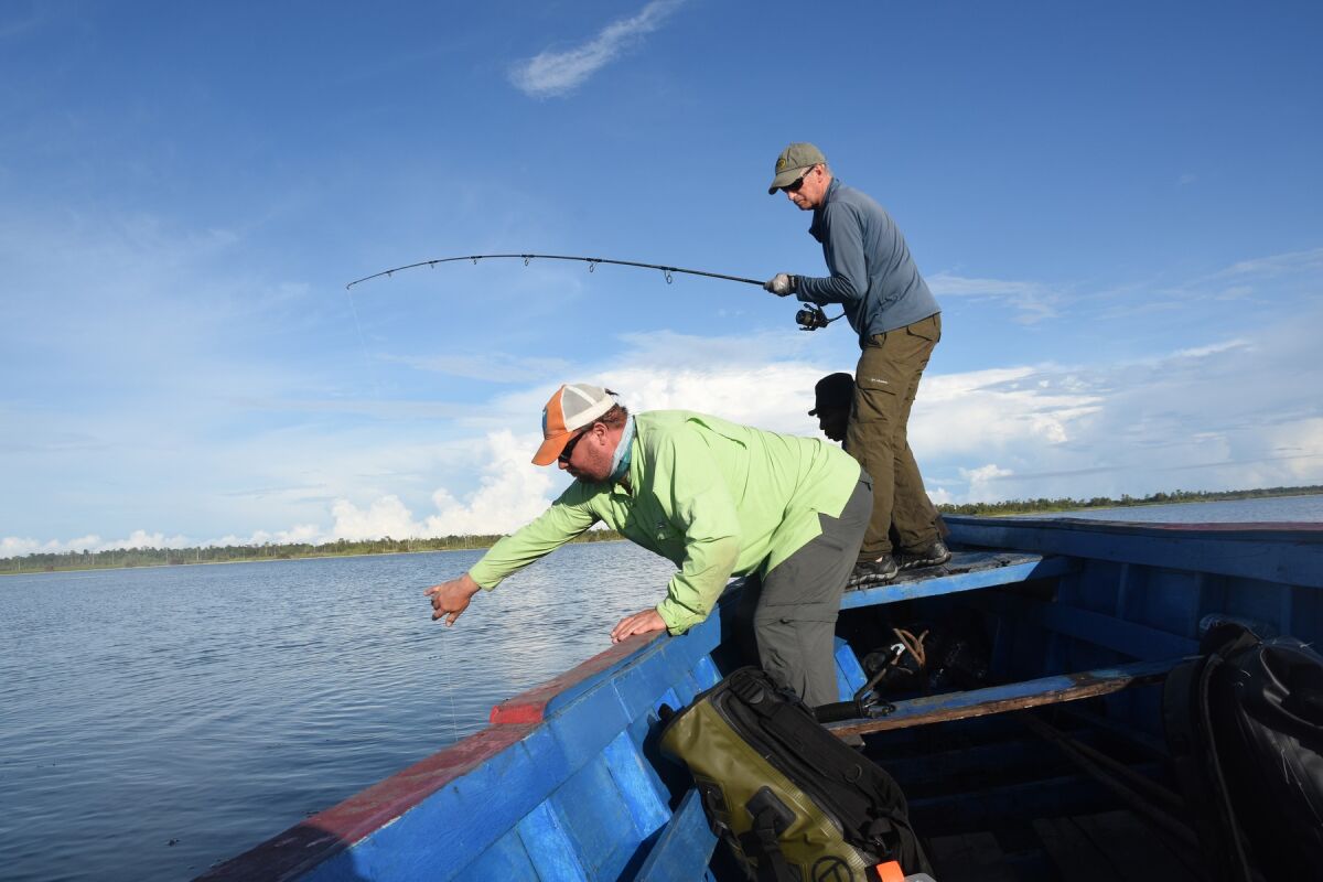 De boten die we gebruiken voor transport en het vissen zijn traditionele houten ‘long boats’ van 7-8 meter lang. Stabiel en met meer dan genoeg ruimte om met drie man vanuit te vissen. Elke boot wordt bestuurd door een lokale kapitein/gids plus een hulp. Afhankelijk van de bestemming voor het vissen op Papuan bass en Spottail bass – meren en/of rivieren – zal er nog een derde boot mee gaan (een kleine polyester boot). Mochten er vliegvissers in de groep zitten dan gaat er sowieso een 3e boot mee.