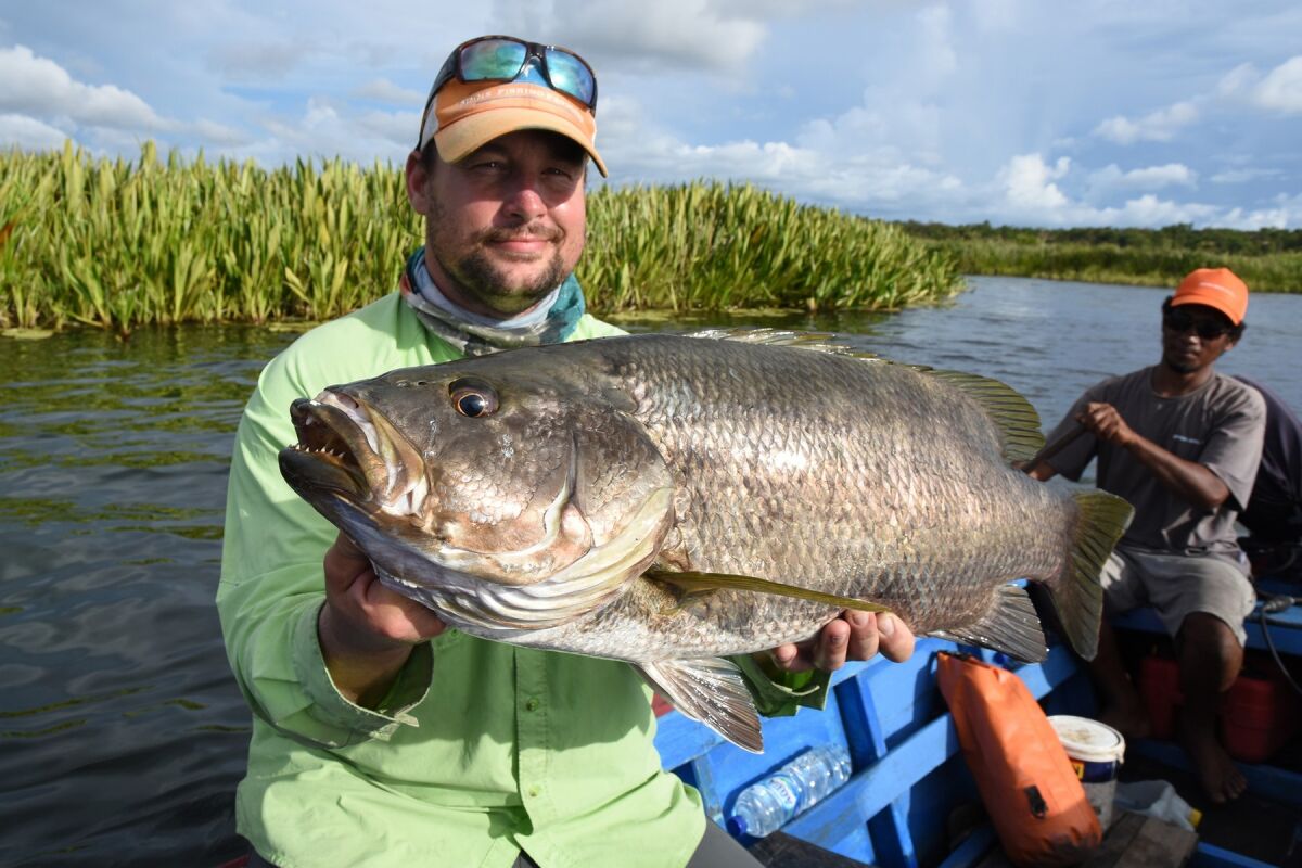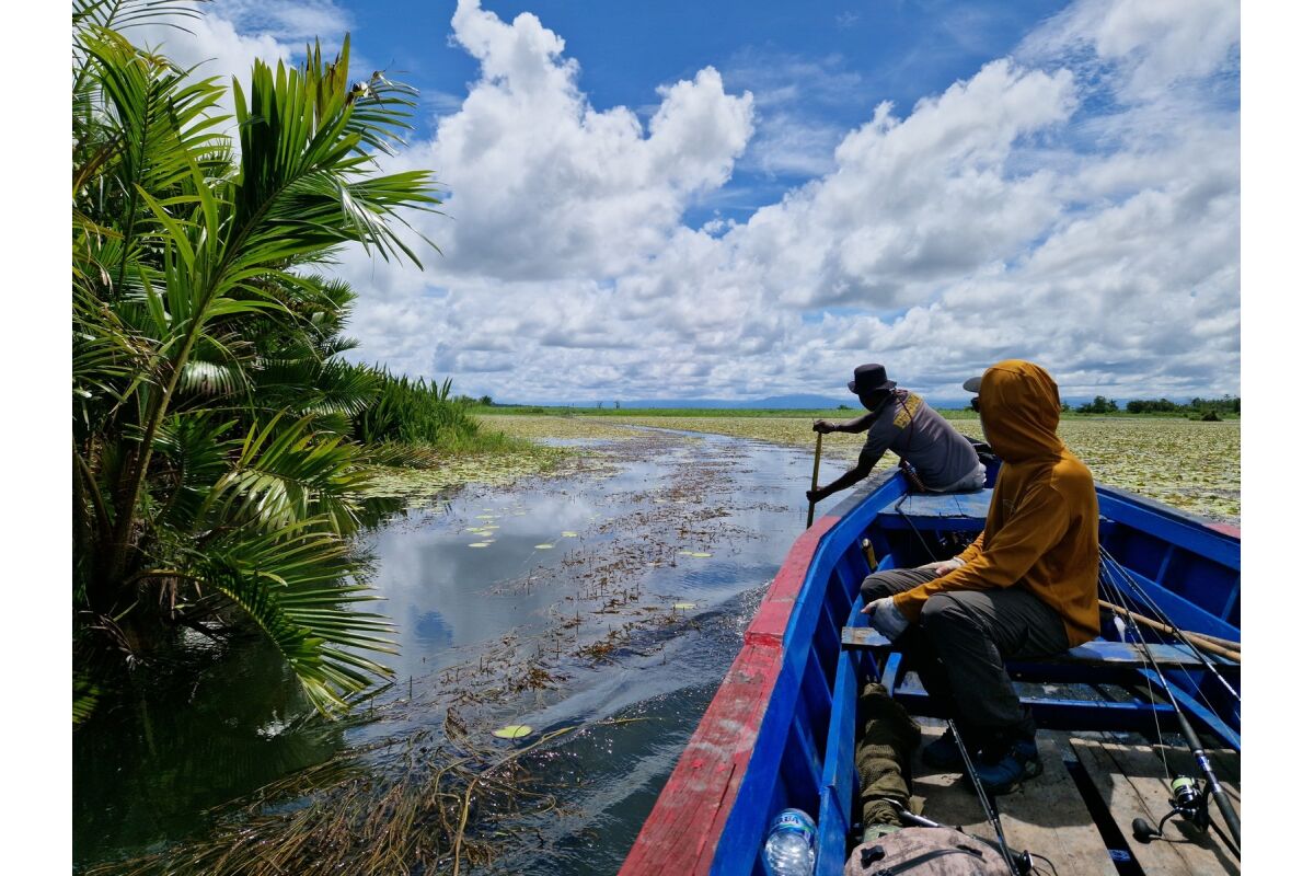 Maar ook hier kan de visserij soms taai zijn en moet je het met een enkele aanbeet doen op een ochtend/middag. Op de meren kun je wat ‘lichter’ vissen, zonder de slip helemaal dicht te draaien. Als een Papuan bass zich toch vastzwemt in een dik wierbed dan krijg je die daar met beleid meestal wel uit.
