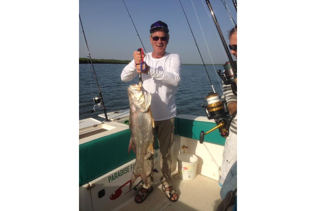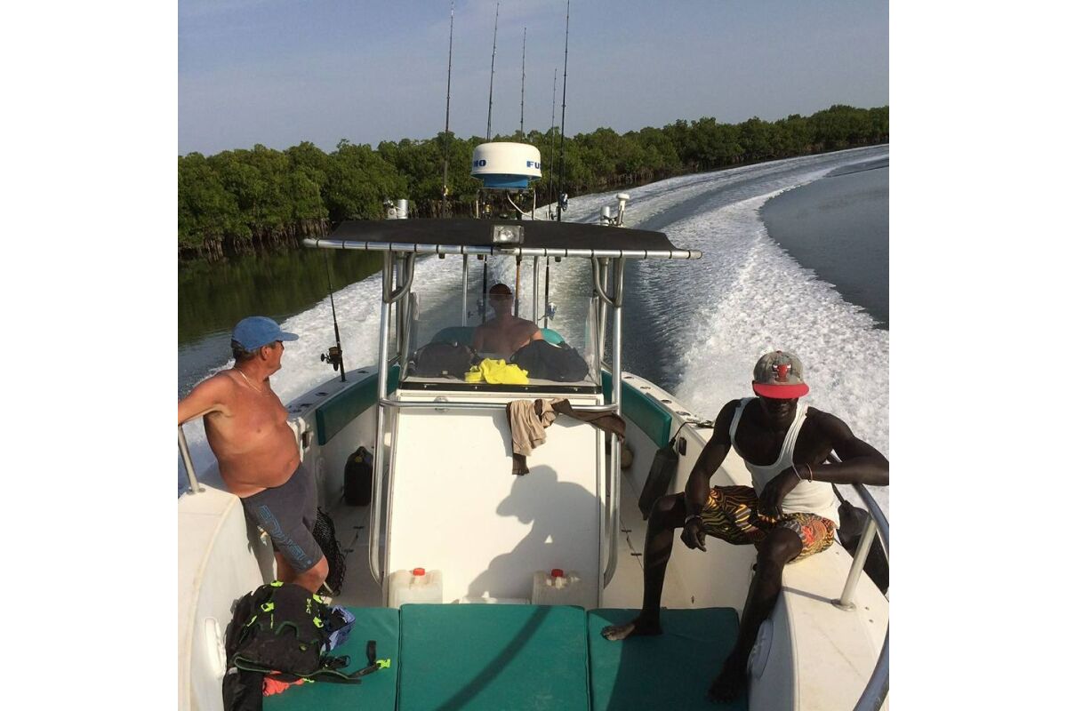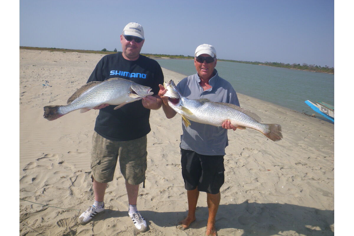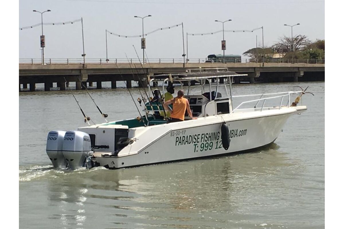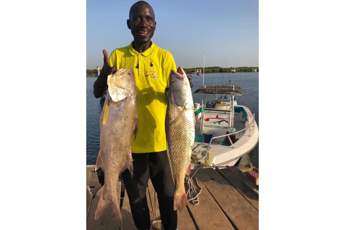 De rivier The Gambia ontspringt in Guinee en stroomt verder door Senegal en mondt uit in zee bij de hoofdstad van Gambia genaamd Banjul. Ondertussen heeft de rivier dan 1125 kilometer afgelegd en is bij de monding ruim 4 kilometer breed geworden. En het is op de scheidslijn tussen zoet en zoutwater bij de monding dat er veel en uitgebreide kreken ontstaan met mangroves die beschutting bieden aan de broedvissen. Maar ook andere obstakels als rotsen en zandbanken maken deze visserij hier zeer interessant. Mede vanwege het feit dat eb en vloed hier voor een flinke stroming zorgen kan je je voorstellen dat zich in deze regio ook grote exemplaren vissen ophouden. Denk daarbij bijvoorbeeld aan barracuda, kapiteinsvis, gitaarrog, stekelrog, catfish, cassave croaker, jack crevalle, pompano, queenfish, tanjurarog en ook de tarpon wordt hier gevangen. Daarnaast kan je ook op open zee (blue water) gericht vissen op dorado en barracuda en als je veel mazzel hebt misschien een zeilvis.