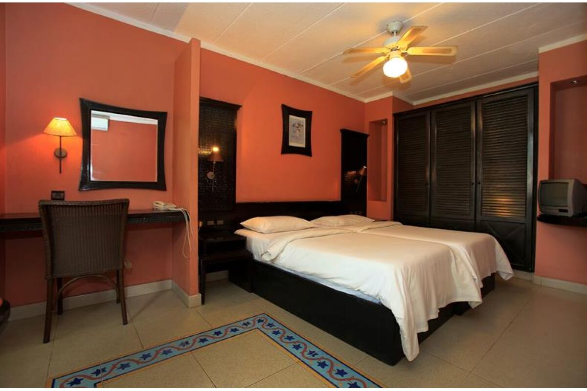Het is een prima hotel met vriendelijke mensen. Er zijn hier tweepersoonskamers beschikbaar met een kleine woonkamer met TV, koelkast en keuken. Er is een klein terras wat uitkijkt over het zwembad. De slaapkamer beschikt over een twee persoonsbed wat uit elkaar kan worden geschoven en heeft standaard een ventilator en je kan tegen een kleine meerprijs de airco gebruiken. Deze accommodatie is netjes en je kan hier ook lekker eten en een koud biertje krijgen dus voor ons vissers is dit prima.