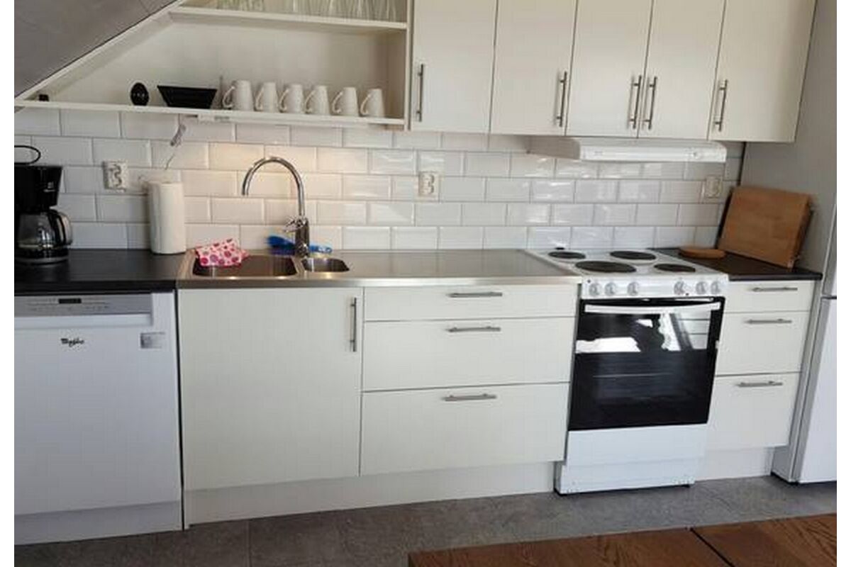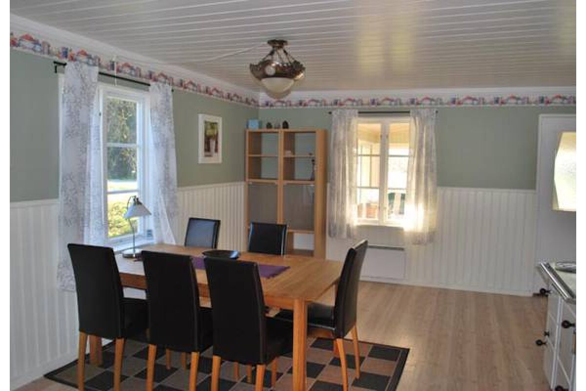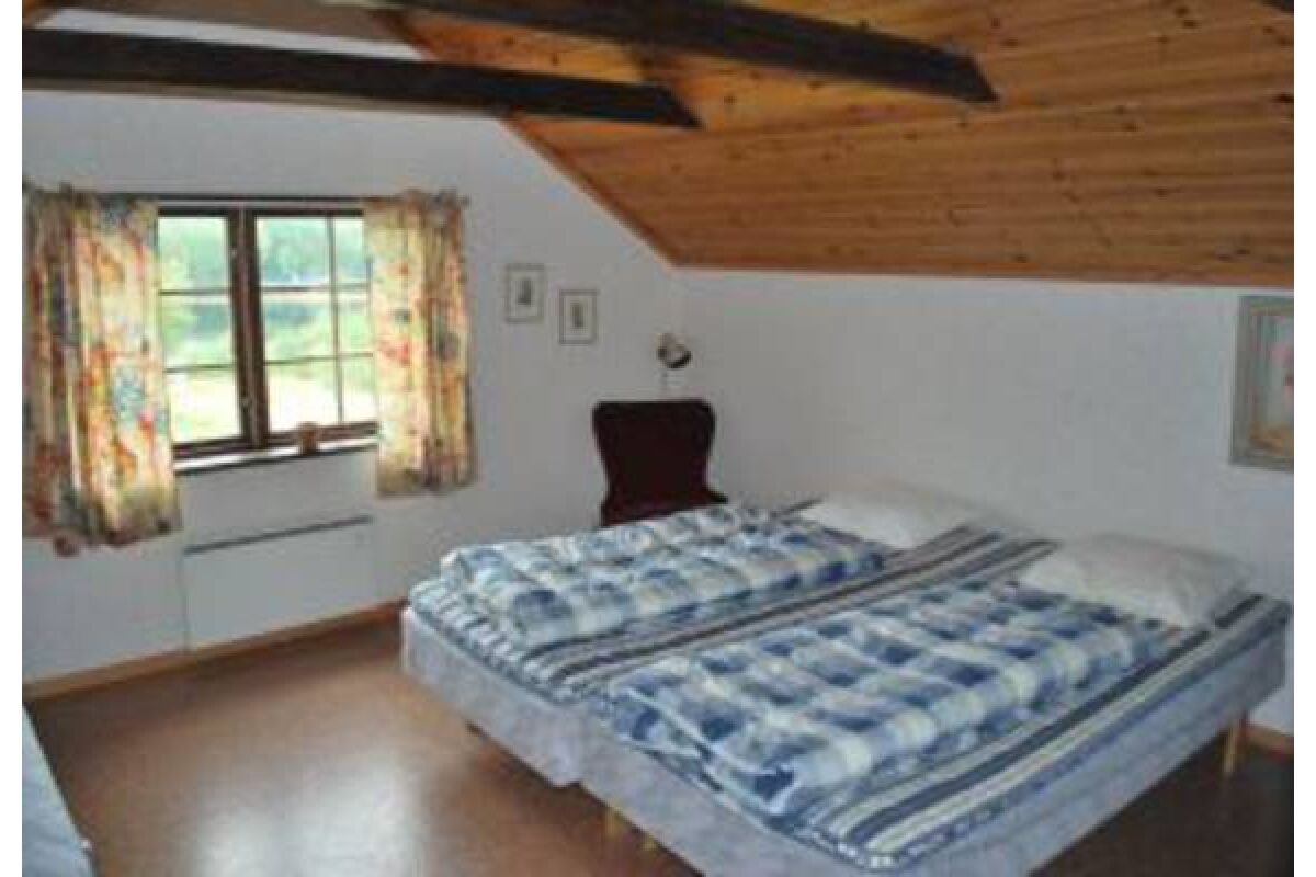 Een typisch Zweeds huis van 65 m2 met veel hout en dito karakter. Het beschikt over een grote woonkeuken en eetruimte, woonkamer met ruime bank, TV en open haard. Er is een badkamer met douche en toilet. Op de bovenverdieping zijn twee slaapkamers waarvan 1 met een Frans dubbelbed en 1 met twee eenpersoonsbedden. De afstand tot het water bedraagt 100 meter.