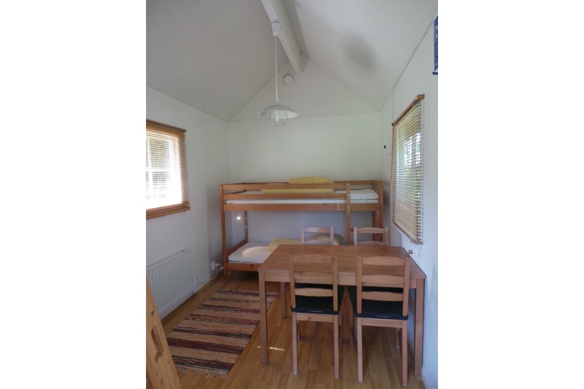 Deze 2 tot 4-persoons ‘stugor’ zijn uitgerust met twee stapelbedden. Er is een kookpit, serviesgoed, bestek, een koelkast, elektrische verwarming, een bankje en een tafel met vier stoelen. Aan de voorkant van het huisje bevindt zich een overdekt terras.