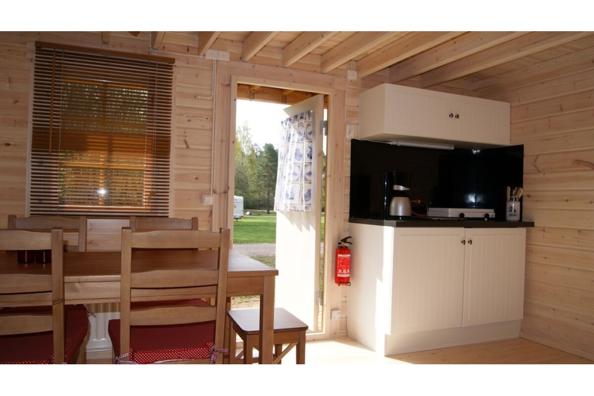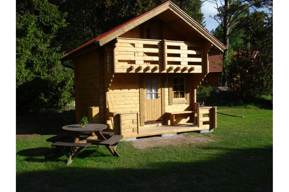 Dit prachtige houten huis is gebouwd van robuuste houten balken op traditionele Zweedse wijze. Het is een gezellig en comfortabel huisje en is geschikt voor 4-6 personen. In het huisje bevinden zich 2 aparte slaapkamers, een slaapvide, een woonkamer en een badkamer met douche en toilet. De ruime woonkamer beschikt over een eethoek, een keuken, een zithoek, een houtkachel en kleuren TV. voor de liefhebber. Voor het huisje is een mooie veranda waar het tijdens zomeravonden goed toeven is.