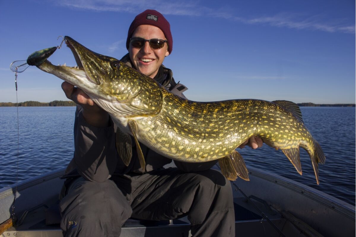 Voor de snoekvisser is het hier een waar paradijs. Rond de ontelbare eilandjes en baaien met grote wier- en leliebedden kun je de snoek praktisch ruiken! Het snoekseizoen begint half april en eindigt in november en de kans op de echte grote groenjassen is het grootst in het voor- en najaar. Vooral het gebied rond de camping staat bekend om zijn grote formaat snoeken, vissen van 1 meter plus zijn hier dan ook geen uitzondering. Slepen met pluggen is favoriet bij de lokale bevolking maar ook het werpen met jerkbaits is in opkomst. Daarnaast is de snoek ook hier natuurlijk erg goed te vangen met een getakelde vette aasvis. De allround kunstaasvisser kan zich hier helemaal uitleven: je kunt met pluggen slepend van stek naar stek, onderweg bij een plantenbed laat je je jerkbait even te water en kom je boven een mooi diep gat dan laat je even je shadje naar beneden glijden.