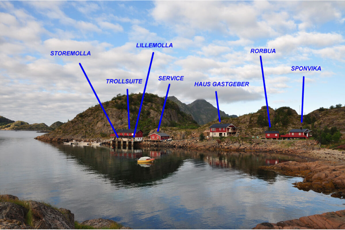 Perfect gelegen locatie in de luwte van de schitterende bergen en prachtige natuur van de Lofoten. Op slechts 2,5 uur van de luchthaven Evenes is dit een waar vissersparadijs op de Lofoten. Omdat het in de luwte ligt in de zuid-oostelijke deel van het schiereiland kennen we hier weinig uitvaldagen. De regio is waarschijnlijk een van de meest indrukwekkende qua natuur en zeker ook qua visserij. Op slechts 1 kilometer varen zit je al bij de eerste topstek Haussund. Dit plateau ligt op ongeveer 50 meter diepte en is doorspekt met kleine eilanden die zorgen voor een goede stroming en dus voedselaanvoer. Dit is slechts een van de voorbeelden die in dit visgebied bijzonder talrijk zijn. Daarmee wordt er doorlopend goed gevangen en zijn koolvis, kabeljauw en zeewolf regelmatig geziene gasten. Het is een rustige locatie waar weinig andere viskampen in de buurt liggen dus ook de stekken worden niet veel bevist door andere sportvissers. Dit is dan ook met recht een toplocatie op de Lofoten.
