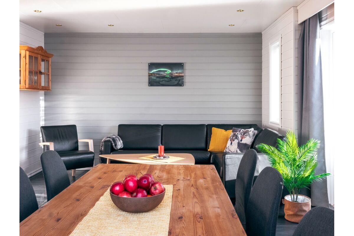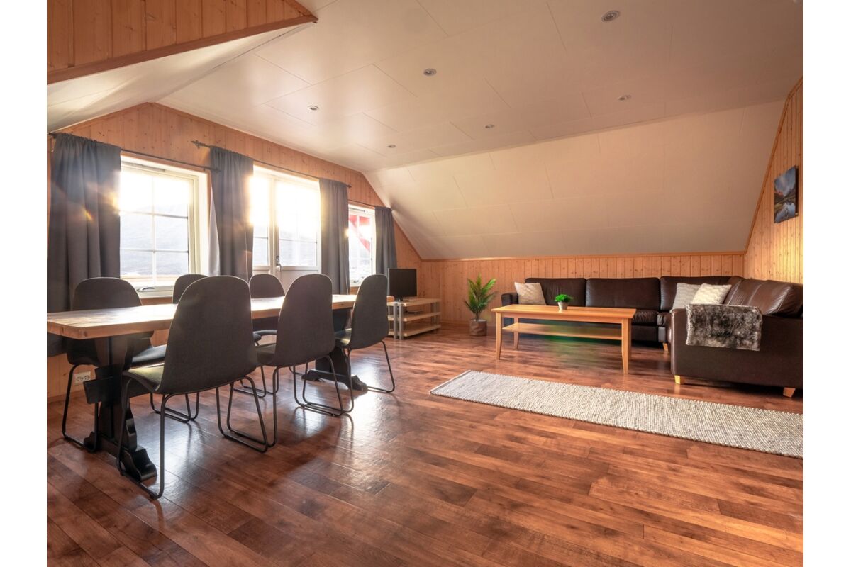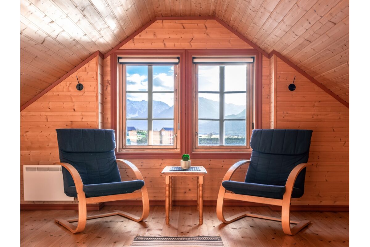 Er zijn 5 woningen op palen over het water gebouwd en comfortabel ingericht. In totaal bieden de woningen 50 m2 woonoppervlak en een fantastisch uitzicht over de Nordlenangenfjord. De woningen zijn modern ingericht en hebben een woonkamer met TV, een volledig ingerichte keuken met vaatwasser, oven, 4 pits fornuis, koffiezetter en waterkoker. Naast de ingang is een kleine schuur met vriezer en waar vismaterialen en overalls droog kunnen worden weggezet en is ook de toegang tot het terras. Op de eerste verdieping zijn 3 slaapkamers met elk 2 eenpersoonsbedden als ook de badkamer met douche en toilet. De woningen zijn dus geschikt voor maximaal 6 personen. En de bedden zijn inclusief bedlinnen en twee handdoeken per persoon.