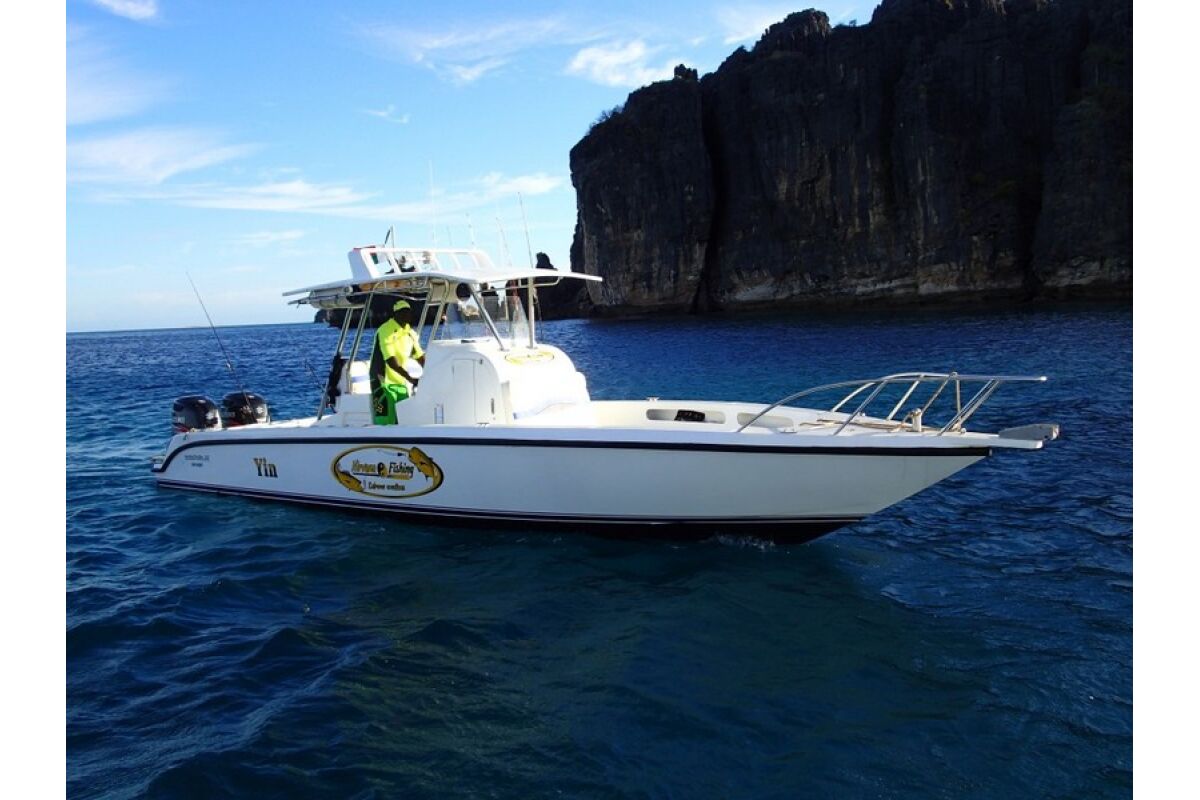 - Sportvissen in moderne en snelle boot, dubbele motoren SUZUKI 250 cv, met bemanning (schipper-gids en stuurman) en brandstof.