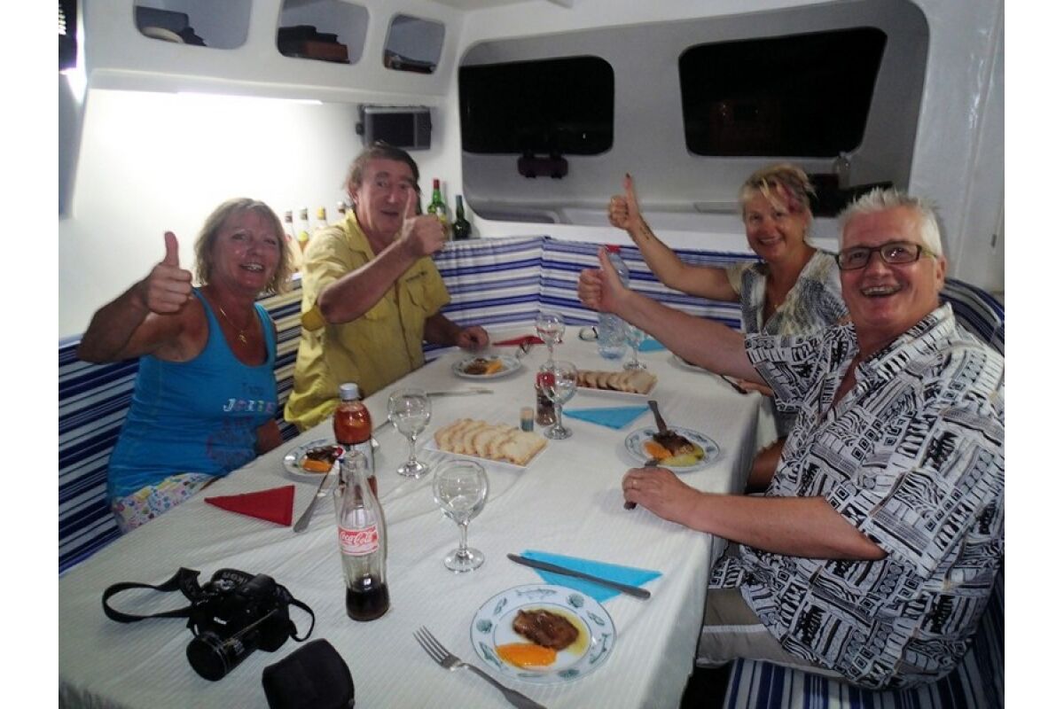 - Accommodatie in de catamaran (hutten met tweepersoonsbed en eigen douche) in volledig pension (diners en ontbijt).