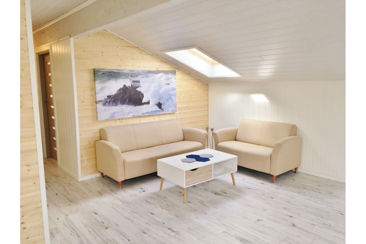 Het viskamp heeft twee grote woonunits. In elk van deze gebouwen zijn 5 tweepersoons slaapkamers met elk 2 eenpersoonsbedden. Iedere kamer komt uit op de grote centrale woonkamer met keuken. Deze ruimte is met 90 m2 comfortabel ingericht. De keuken is volledig ingericht en beschikt over alle gemakken als vaatwasser, 4 pits fornuis, oven, koelkast, magnetron etc. Daarnaast ziet het er ook nog nog eens heel mooi uit aangezien alles in hout wordt uitgevoerd. Per woonunit zijn er ook twee douches en toiletten beschikbaar. De woonunits liggen op slechts enkele meters lopen van de boten en het servicehuis.Zo kan je hier dus met 4 maar ook met 10 man tegelijkertijd verblijven! En met 4 of 6 man heb je dus een zee van ruimte tot je beschikking!