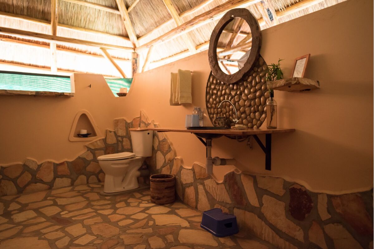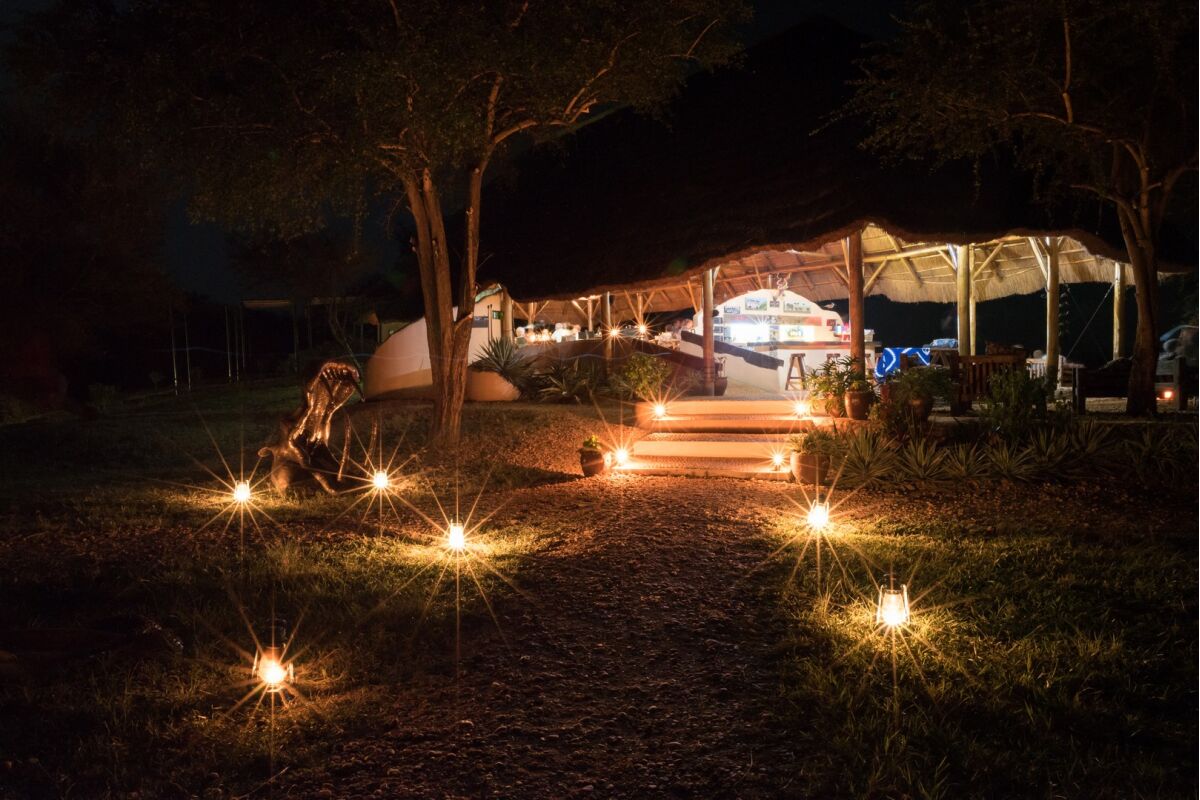 Je verblijft in een luxueuze lodge met onder meer rietgedekte luxe tenten die meer op een comfortabele woning lijken dan wat anders. De woningen zijn van alle comfort voorzien: bedden met klamboe, douche met warm en koud water, kapstokken, kluisjes… Je voelt zich hier meteen thuis! Het restaurant is uitstekend, net als de bar die frisdranken, wijn en biertjes serveert.