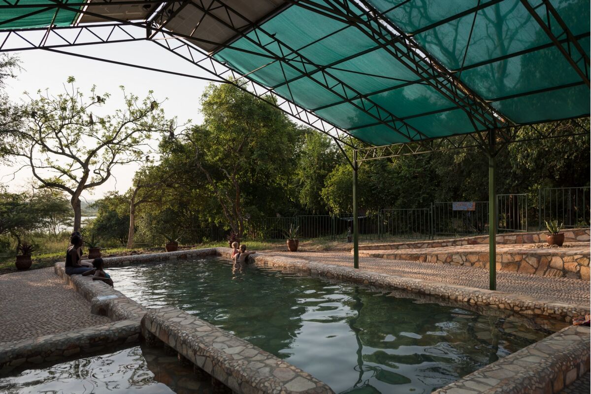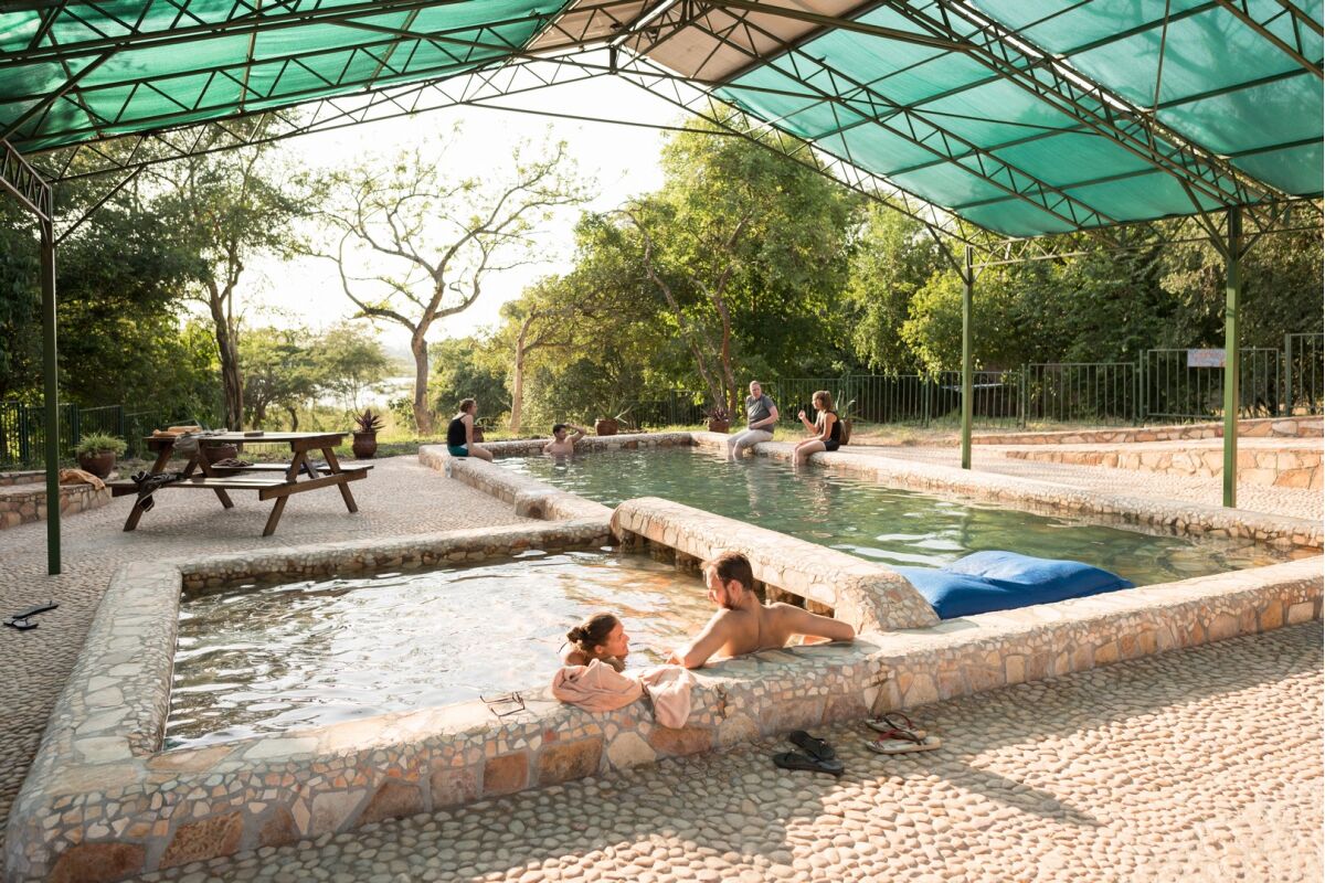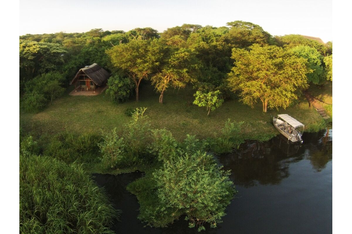 Elke avond komen de nijlpaarden hier grazen: ze hijsen zich dan uit de rivier en wandelen gewoon vrij rond. Om in de donkere uren naar je woning terug te wandelen, krijg je dan ook steevast een steward mee.