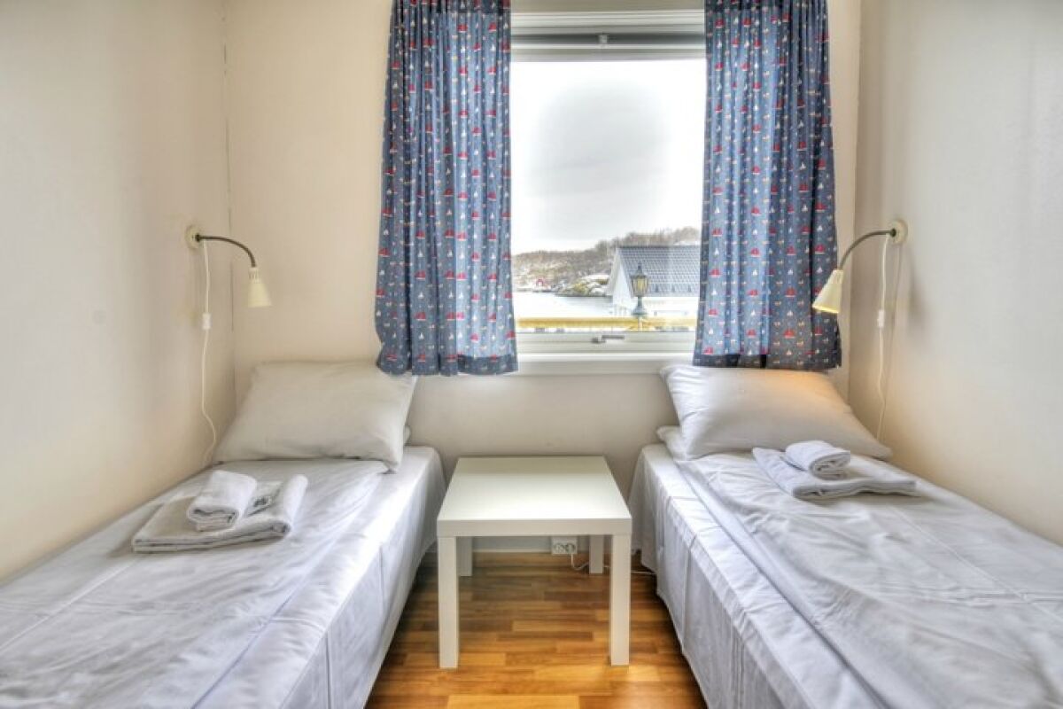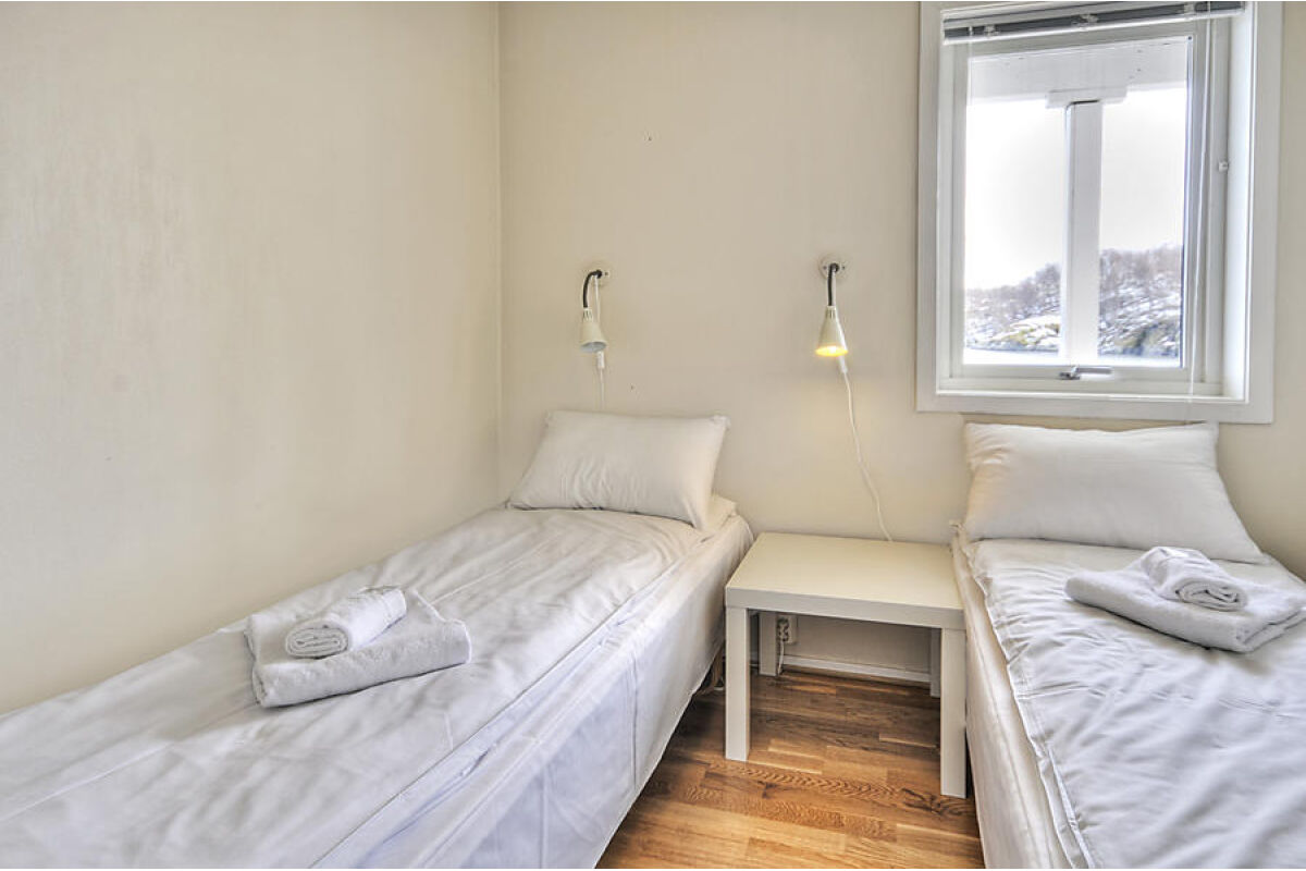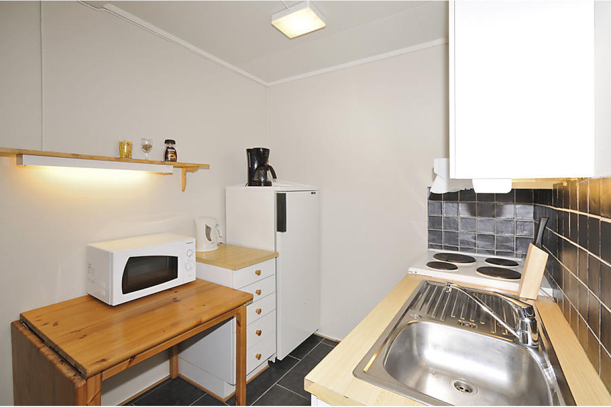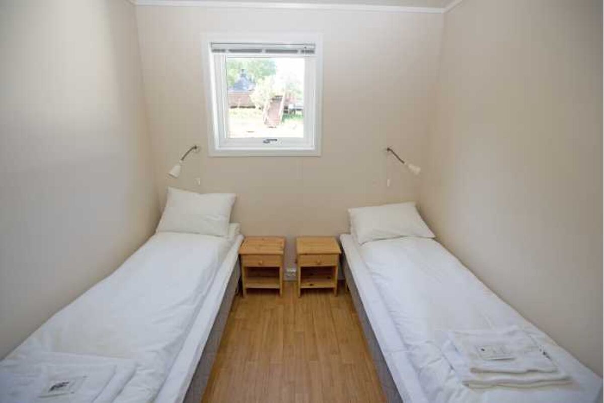max 2 personen, 45 m2, 2 slaapkamer met elk 1 eenpersoonsbed, 1 woonkamer en een douche/toilet combi