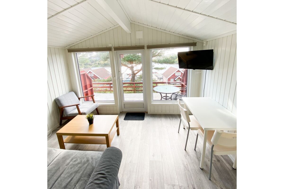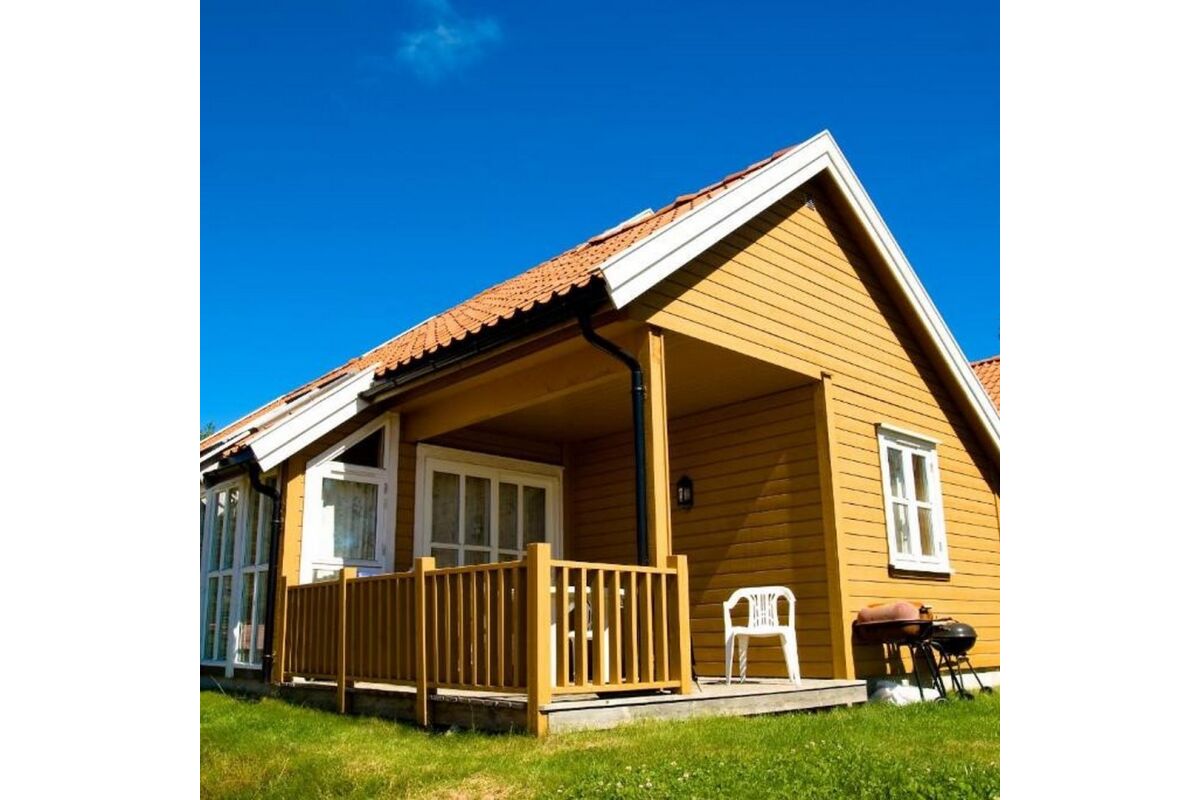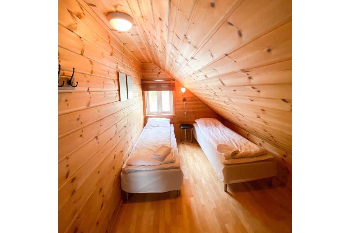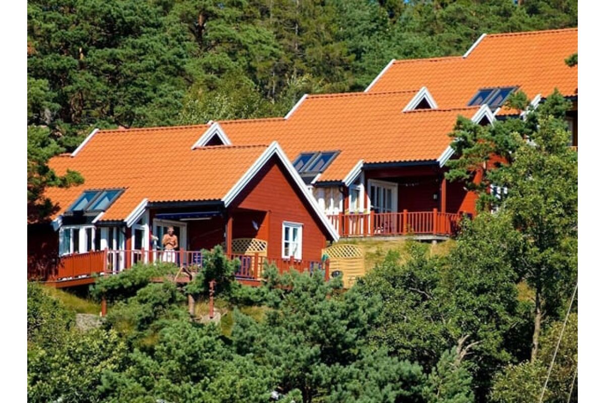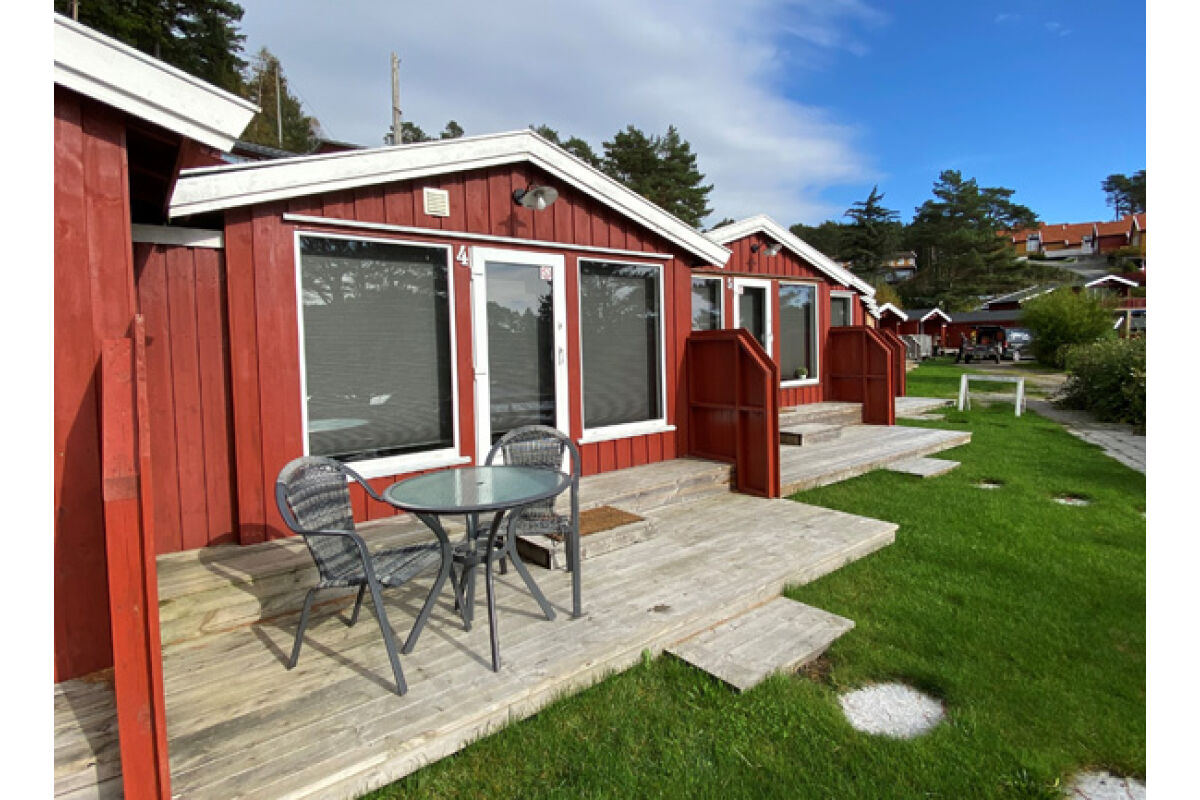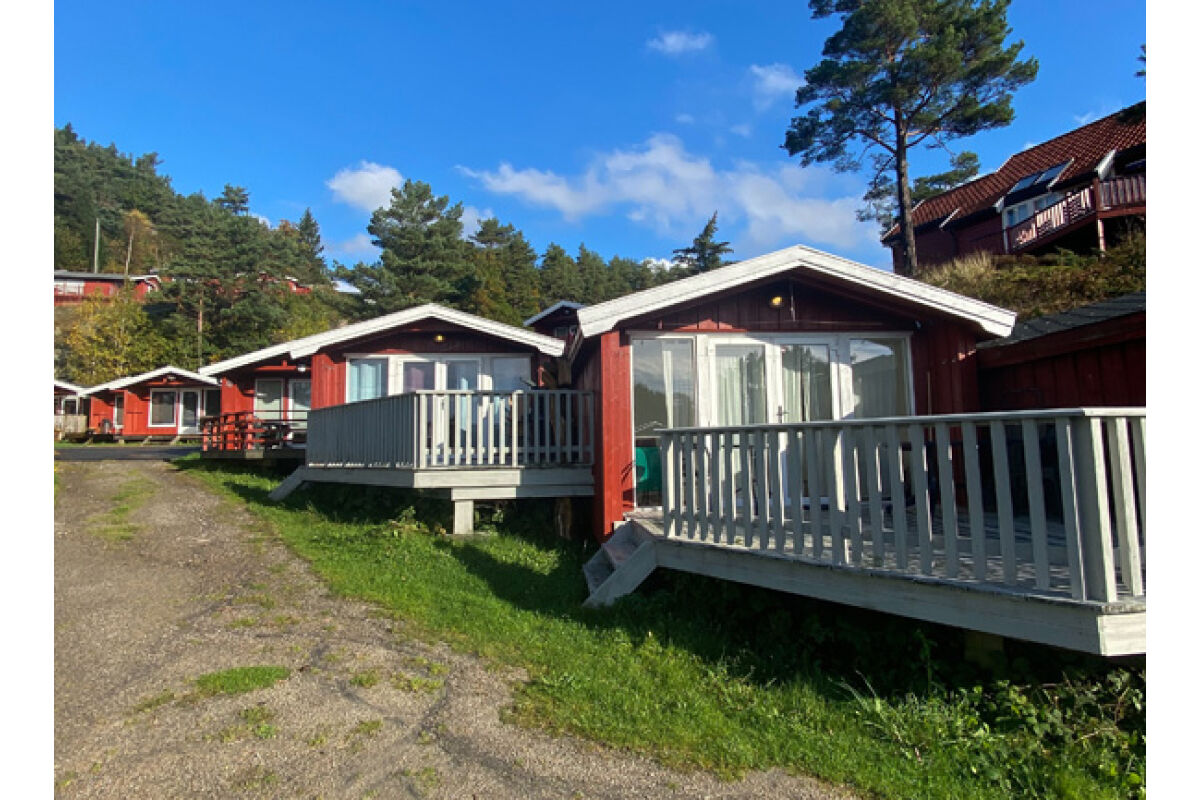 Hutten van 80 m² met 6 bedden in 3 slaapkamers + 2 bedden op de vide. Twee van de slaapkamers hebben een tweepersoonsbed. De hutten hebben een mooie ligging op een heuvelrug, met een prachtig uitzicht over de fjord en de zuidelijke archipel. De hutten hebben een goed uitgeruste keuken, een woonkamer, een badkamer en een terras.