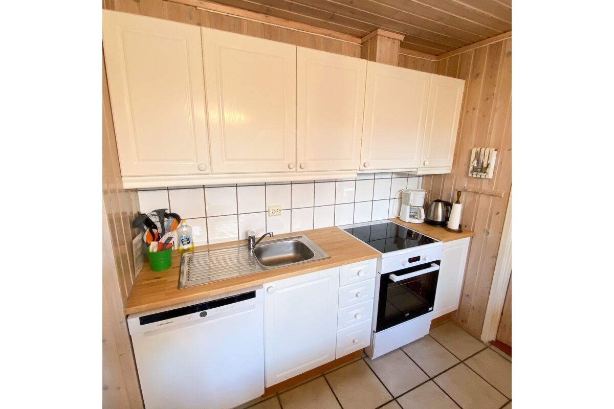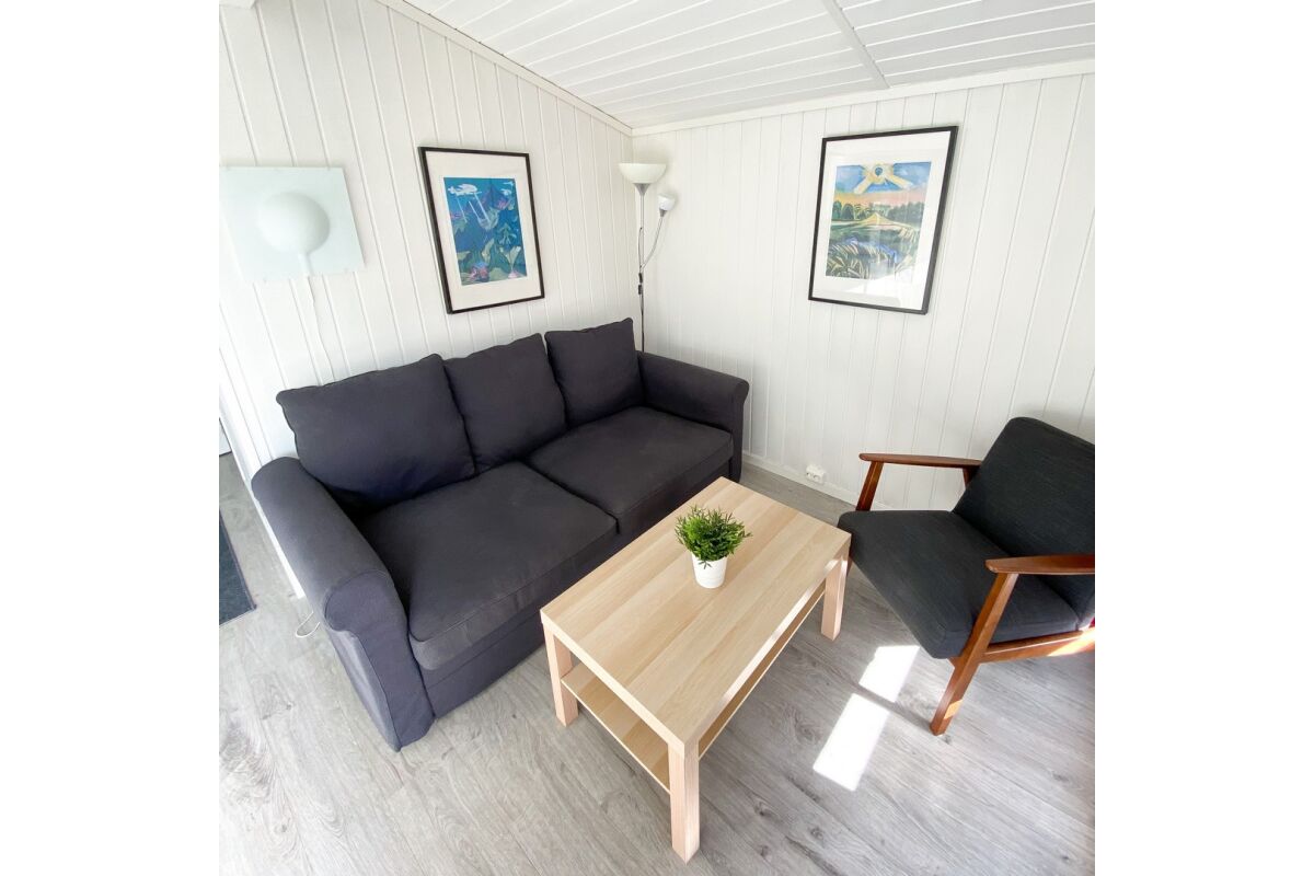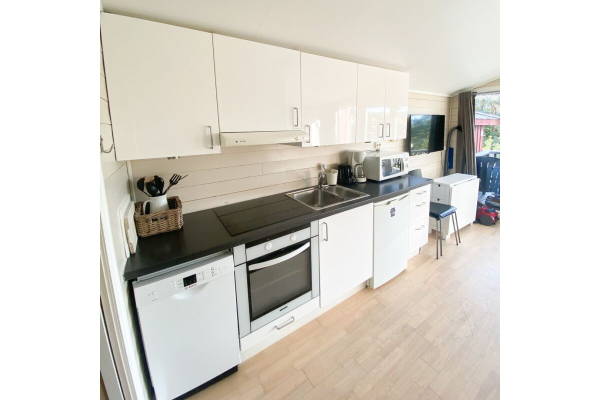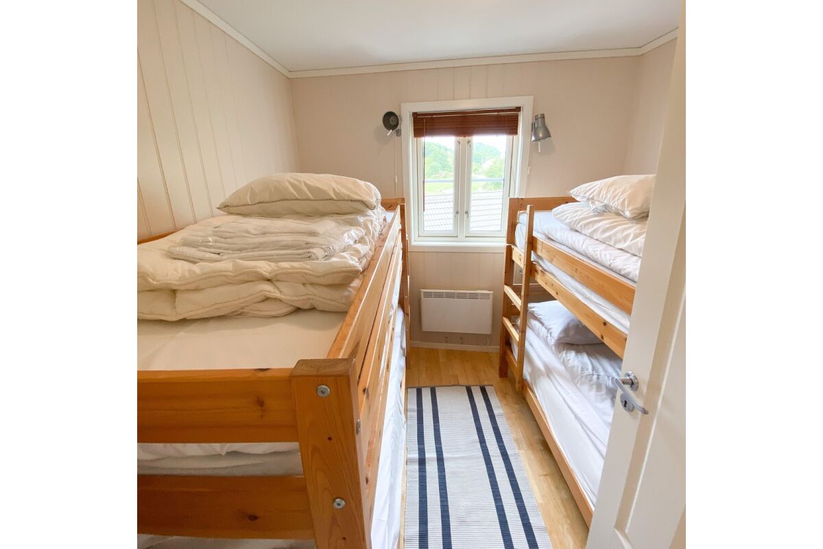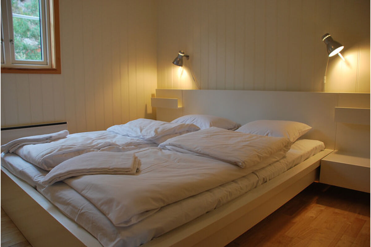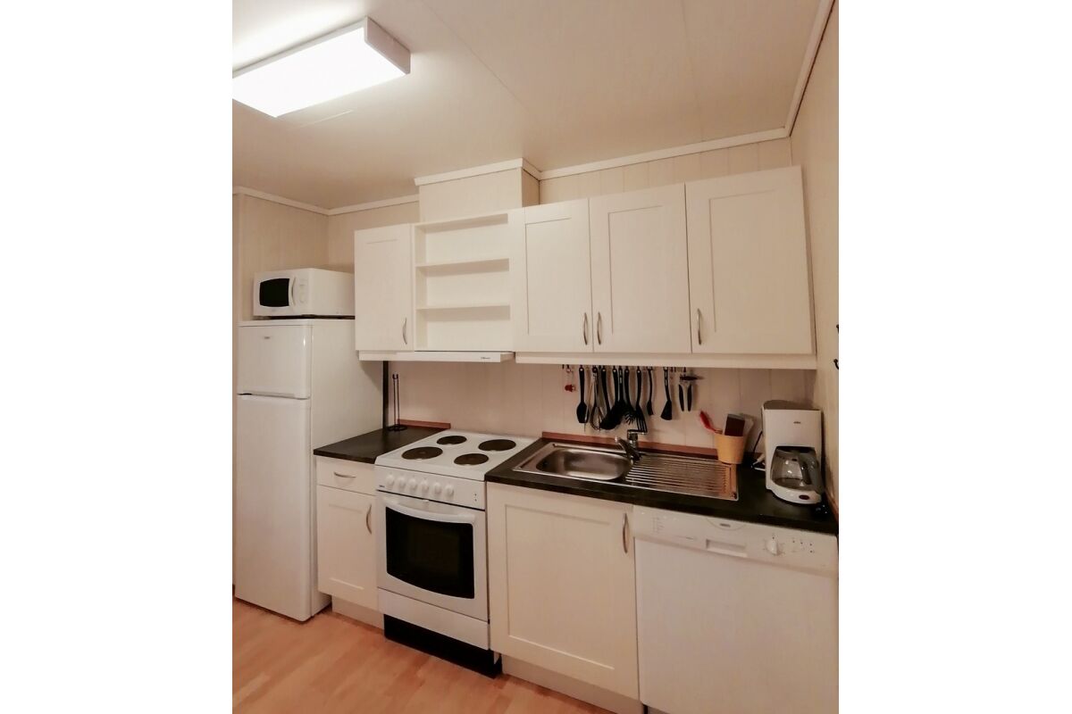 Hutten van 80 m² met 6 bedden in 3 slaapkamers + 2 bedden op de vide. Twee van de slaapkamers hebben een tweepersoonsbed. De hutten hebben een mooie ligging op een heuvelrug, met een prachtig uitzicht over de fjord en de zuidelijke archipel. De hutten hebben een goed uitgeruste keuken, een woonkamer, een badkamer en een terras.