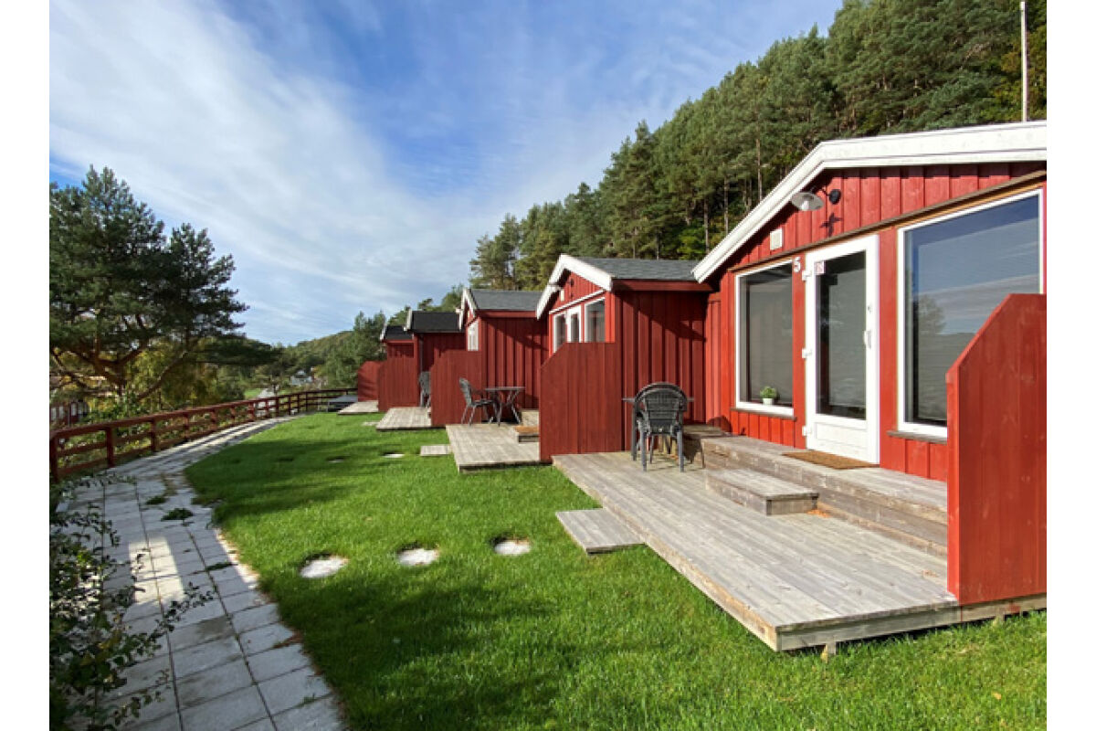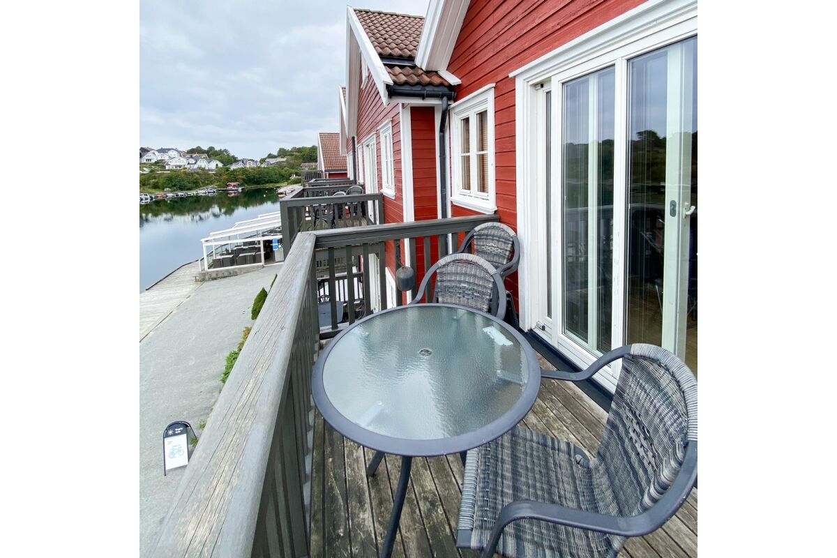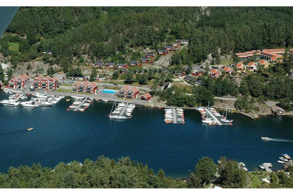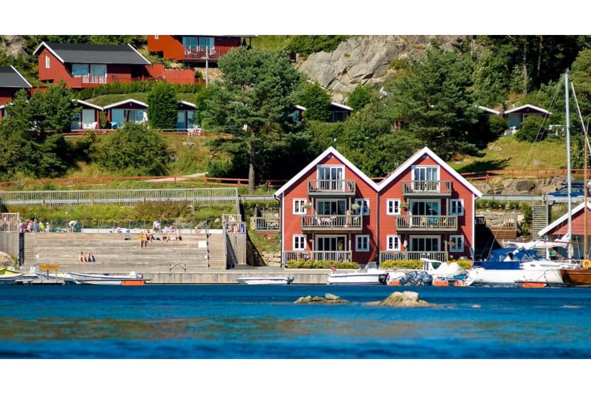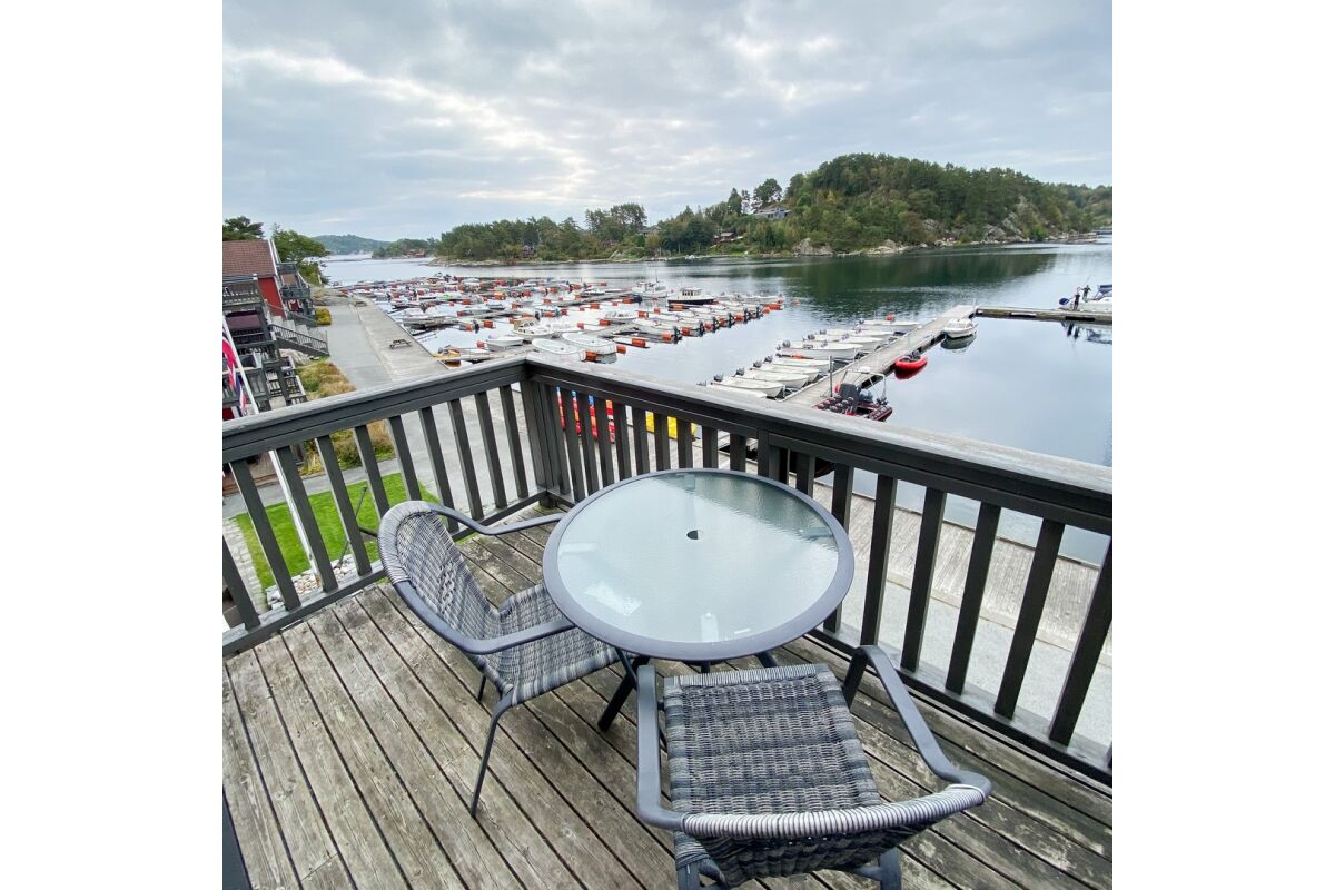 De appartementen zijn tegen de helling aan gebouwd op een rustige locatie en op steenworp afstand van de boten. Vanuit de appartementen heb je een zeer mooi uitzicht over de baai van Tregde en de fjord. De overige appartementen liggen direct aan het water.
