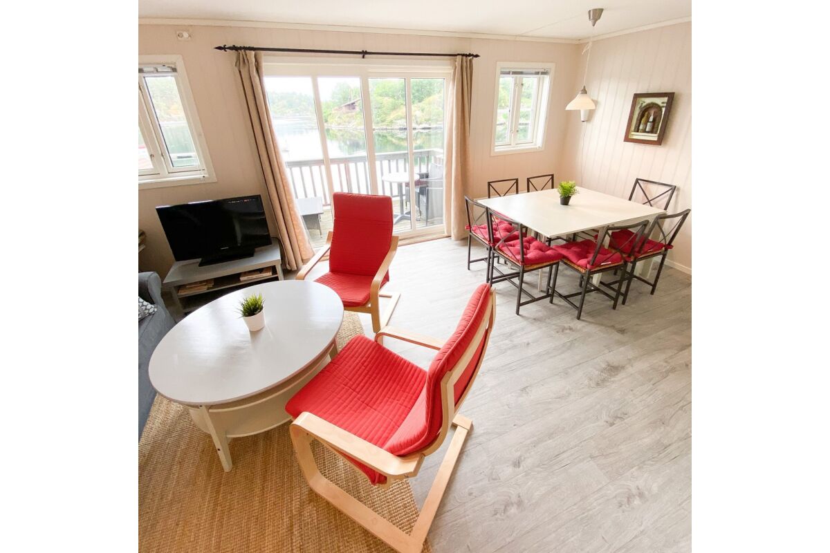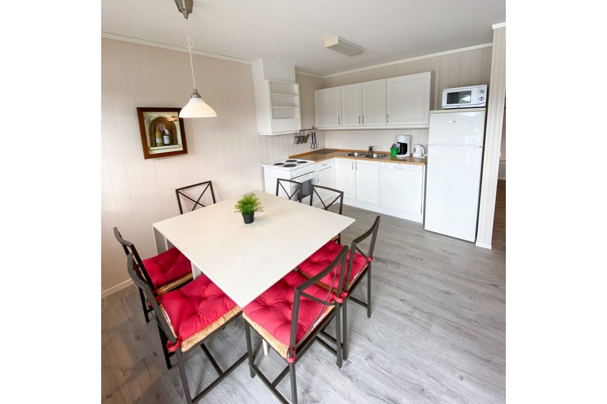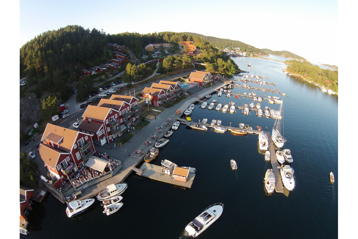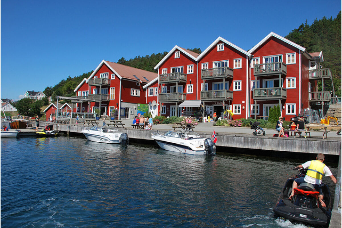 De appartementen zijn tegen de helling aan gebouwd op een rustige locatie en op steenworp afstand van de boten. Vanuit de appartementen heb je een zeer mooi uitzicht over de baai van Tregde en de fjord. De overige appartementen liggen direct aan het water.