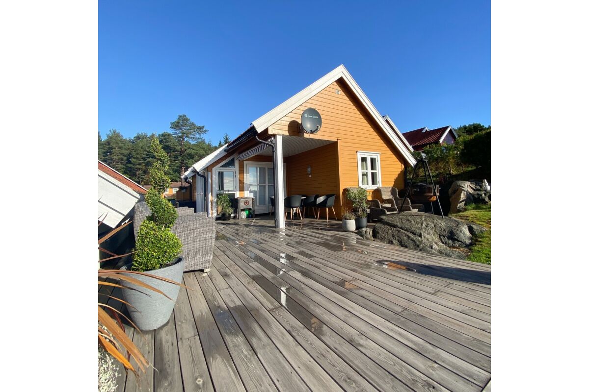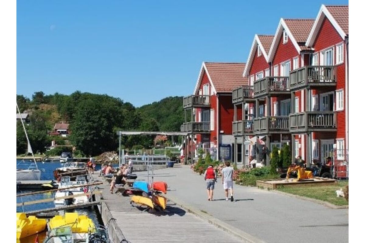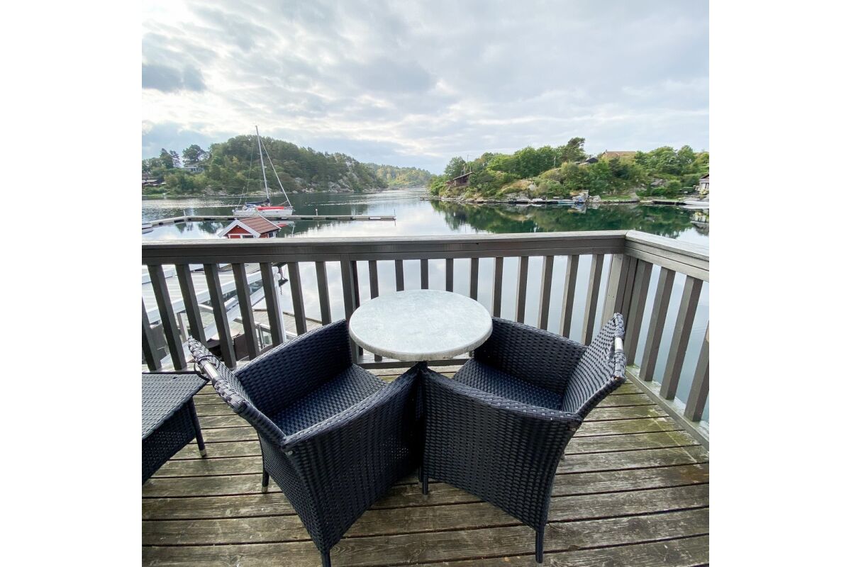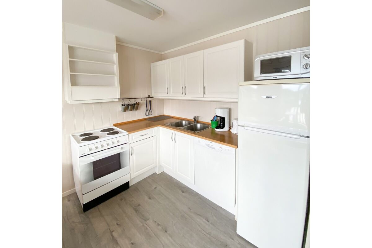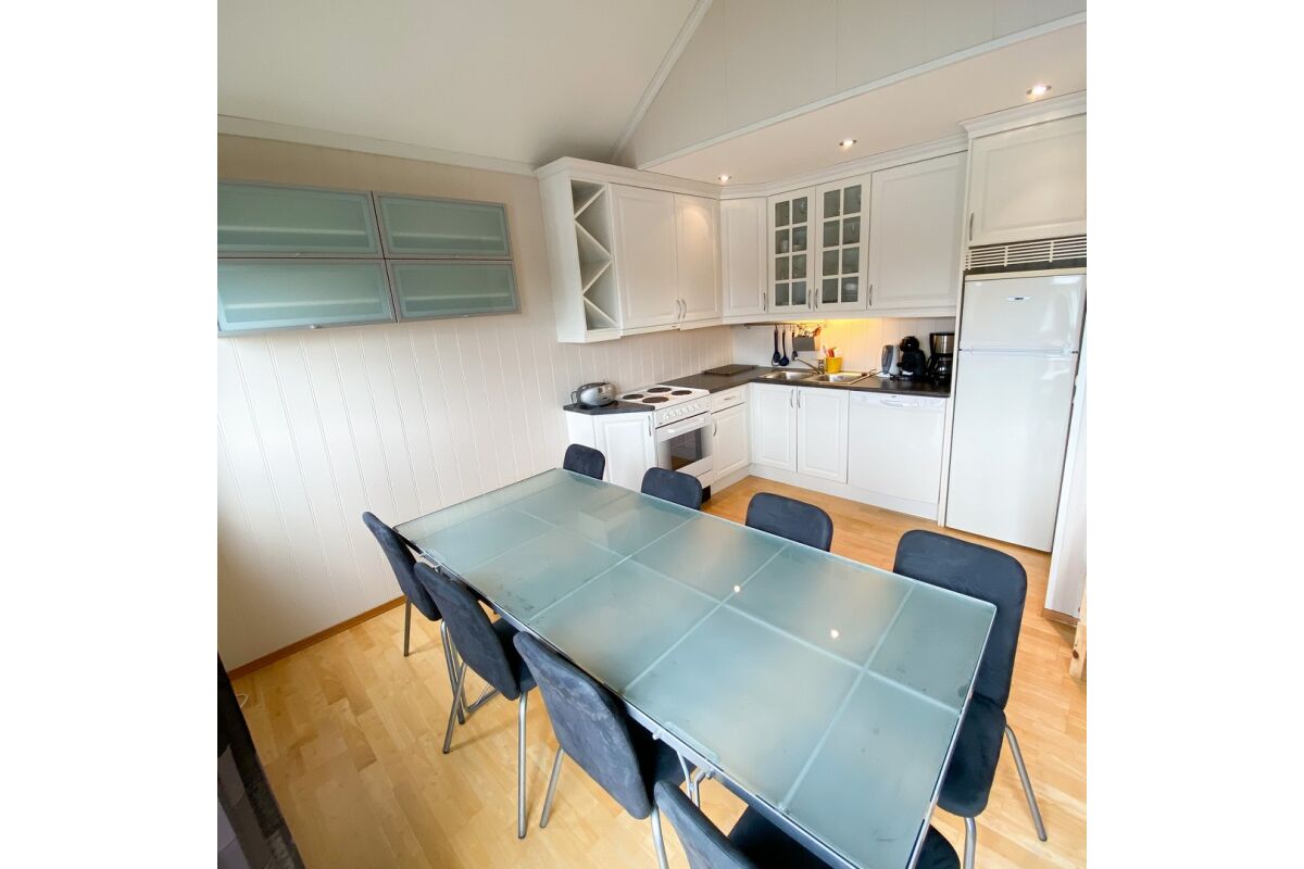 De appartementen zijn tegen de helling aan gebouwd op een rustige locatie en op steenworp afstand van de boten. Vanuit de appartementen heb je een zeer mooi uitzicht over de baai van Tregde en de fjord. De overige appartementen liggen direct aan het water.
