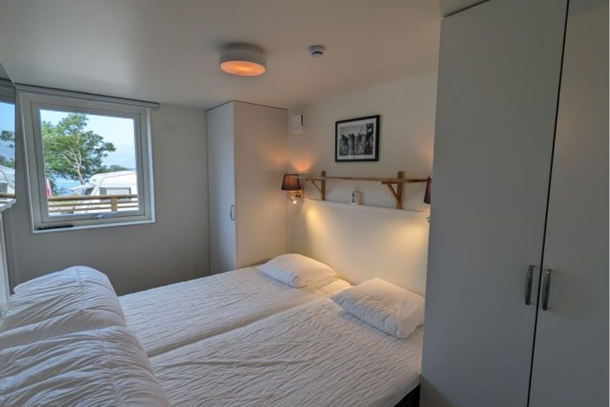 Van deze woningen zijn er 5 beschikbaar. Ten opzichte van de standaard versie heeft deze woning een extra slaapkamer met twee stapelbedden. De woningen zijn 26 m2 en er is een terras bij van 12 m2 met uitzicht op Karlskorna, BBQ en tuinmeubelen. Verder is er een aparte badkamer met douche en toilet. De keuken is ook volledig ingericht en heeft een 4 pits fornuis met oven, koelkast met kleine vriezer, magnetron, koffiezetter en waterkoker en natuurlijk alle benodigdheden als borden, bestek en glaswerk. De woningen liggen op slechts 35 tot 90 meter van het water. Bijkomende schoonmaak- en boekingskosten € 119,-.